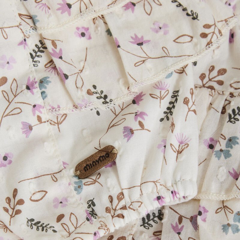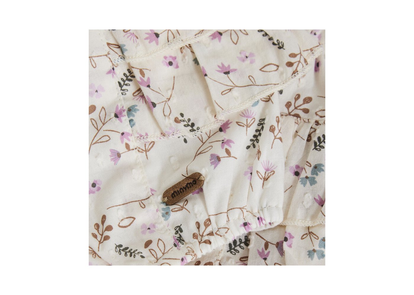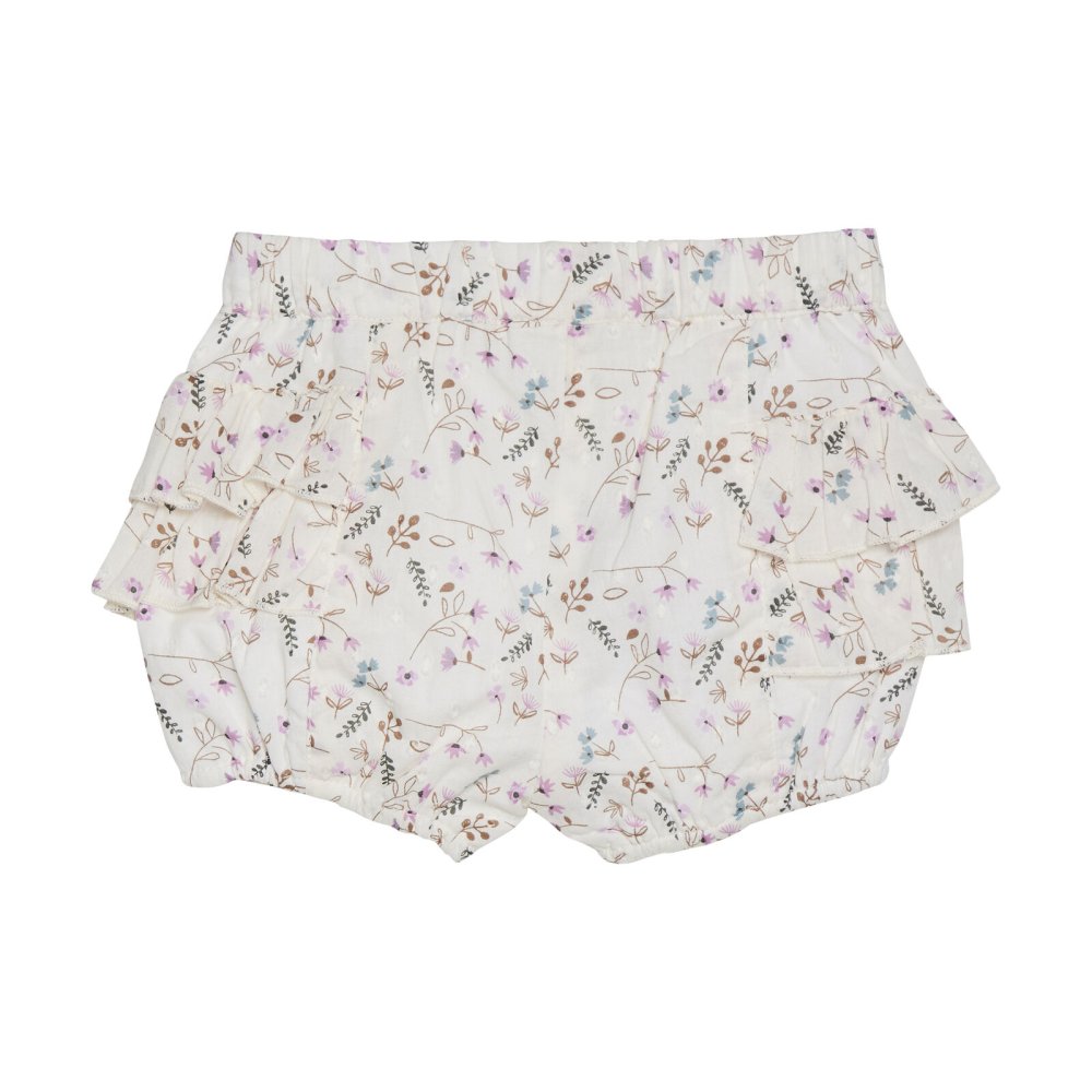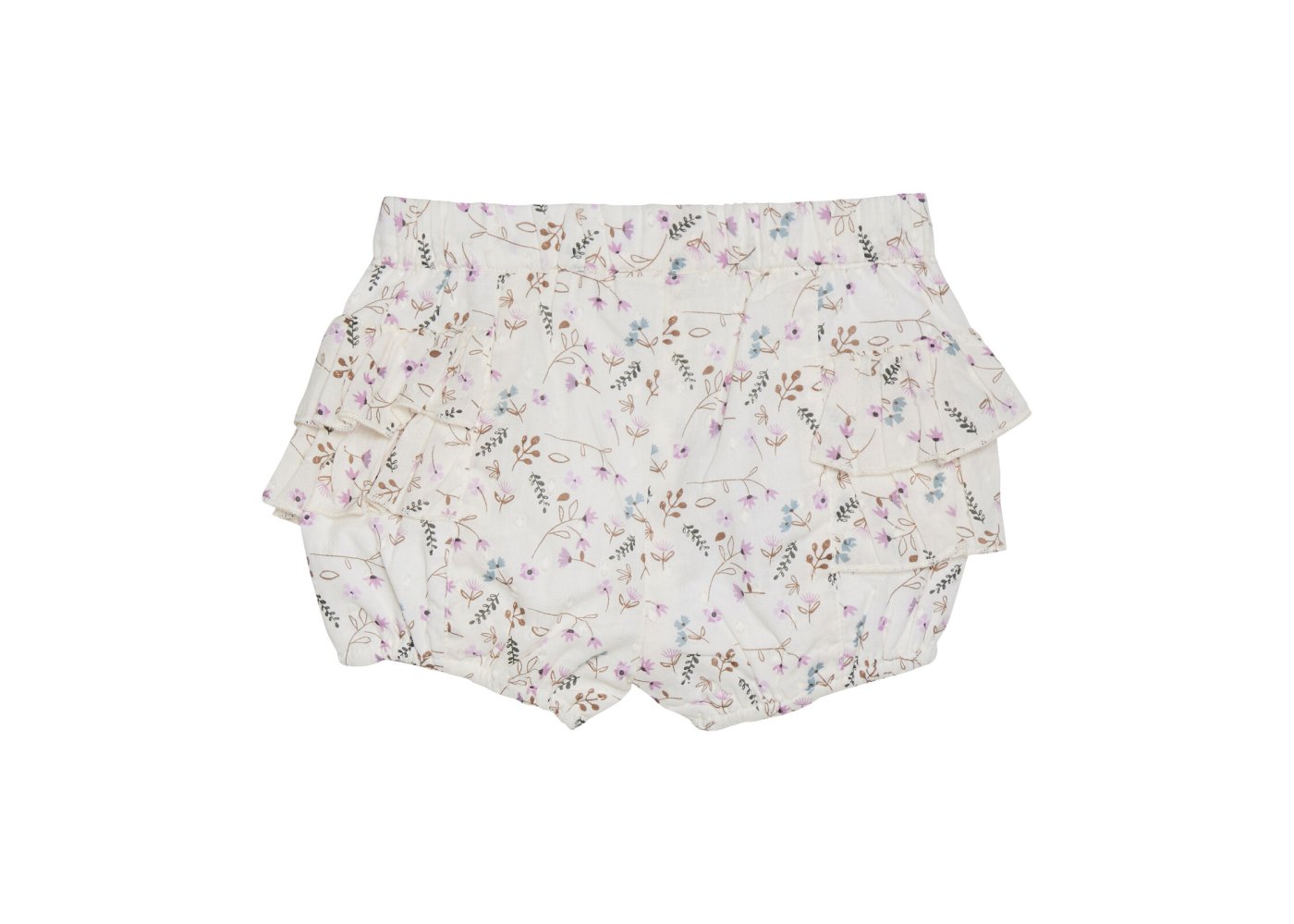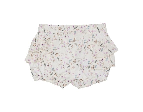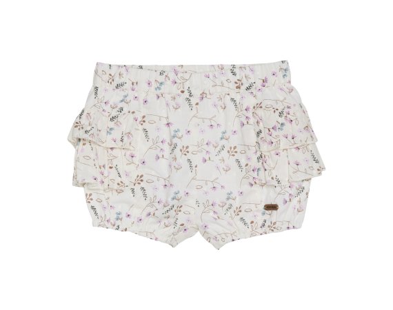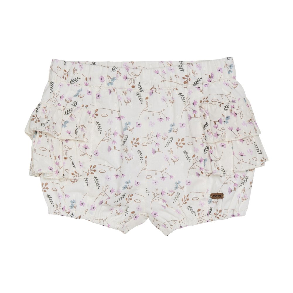 Yndige shorts med fine flæser og blomsterprint fra Minymo.Shortsen har en bred elastik i talje, smal elastik i ben, der giver shortsene et sødt poset look.