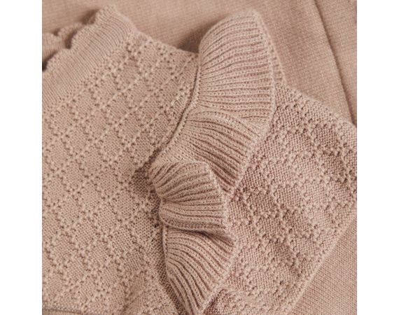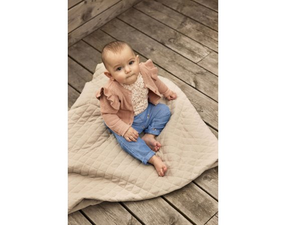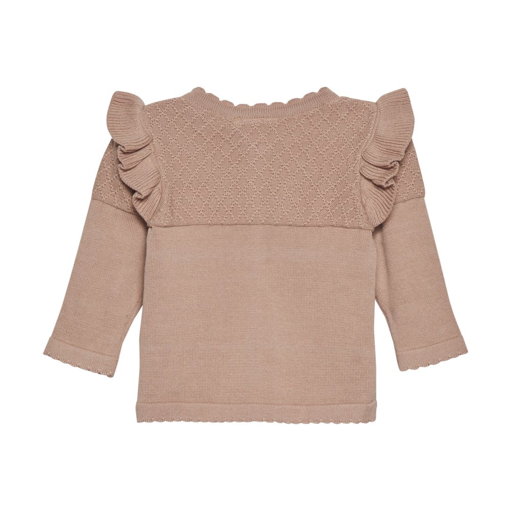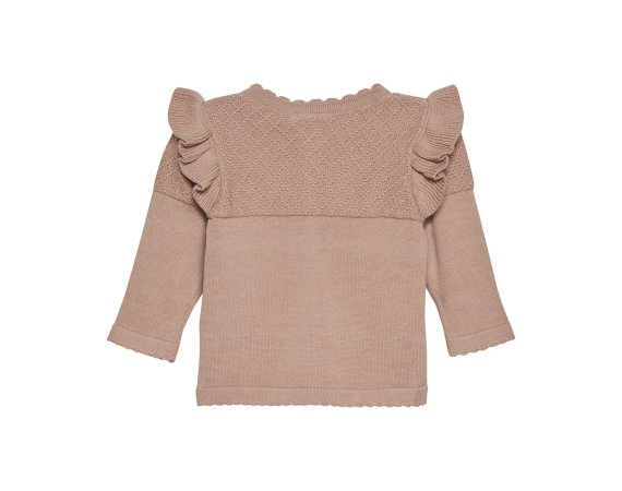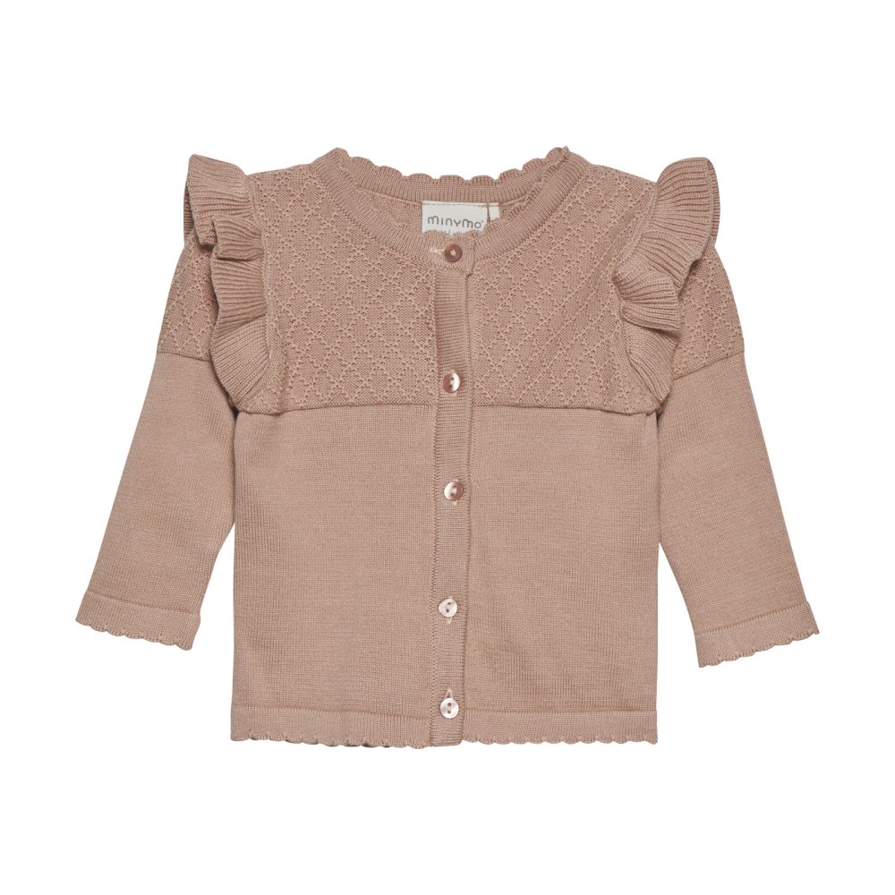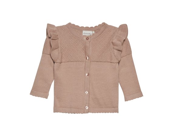 Lækker strik cardigan med flæser og flot strik mønster fra Minymo.