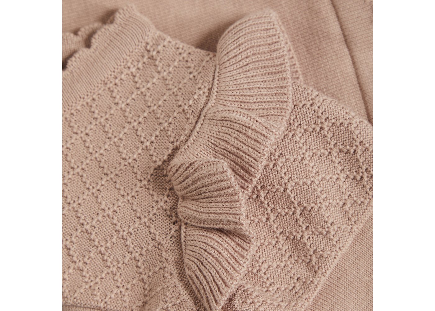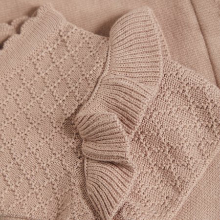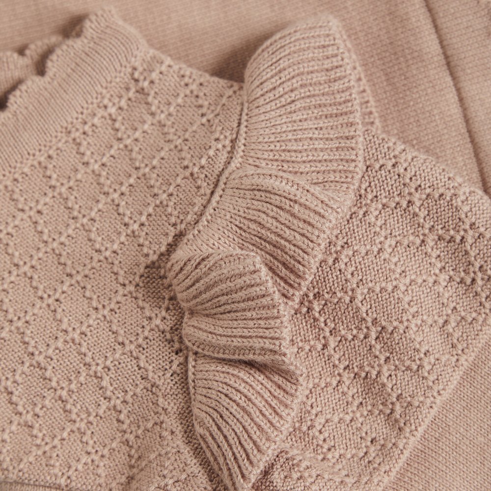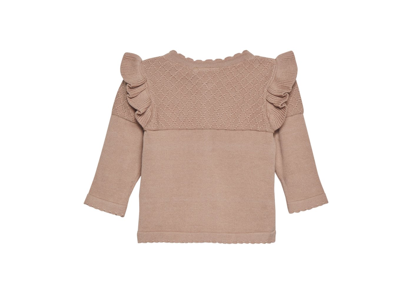 Lækker strik cardigan med flæser og flot strik mønster fra Minymo.