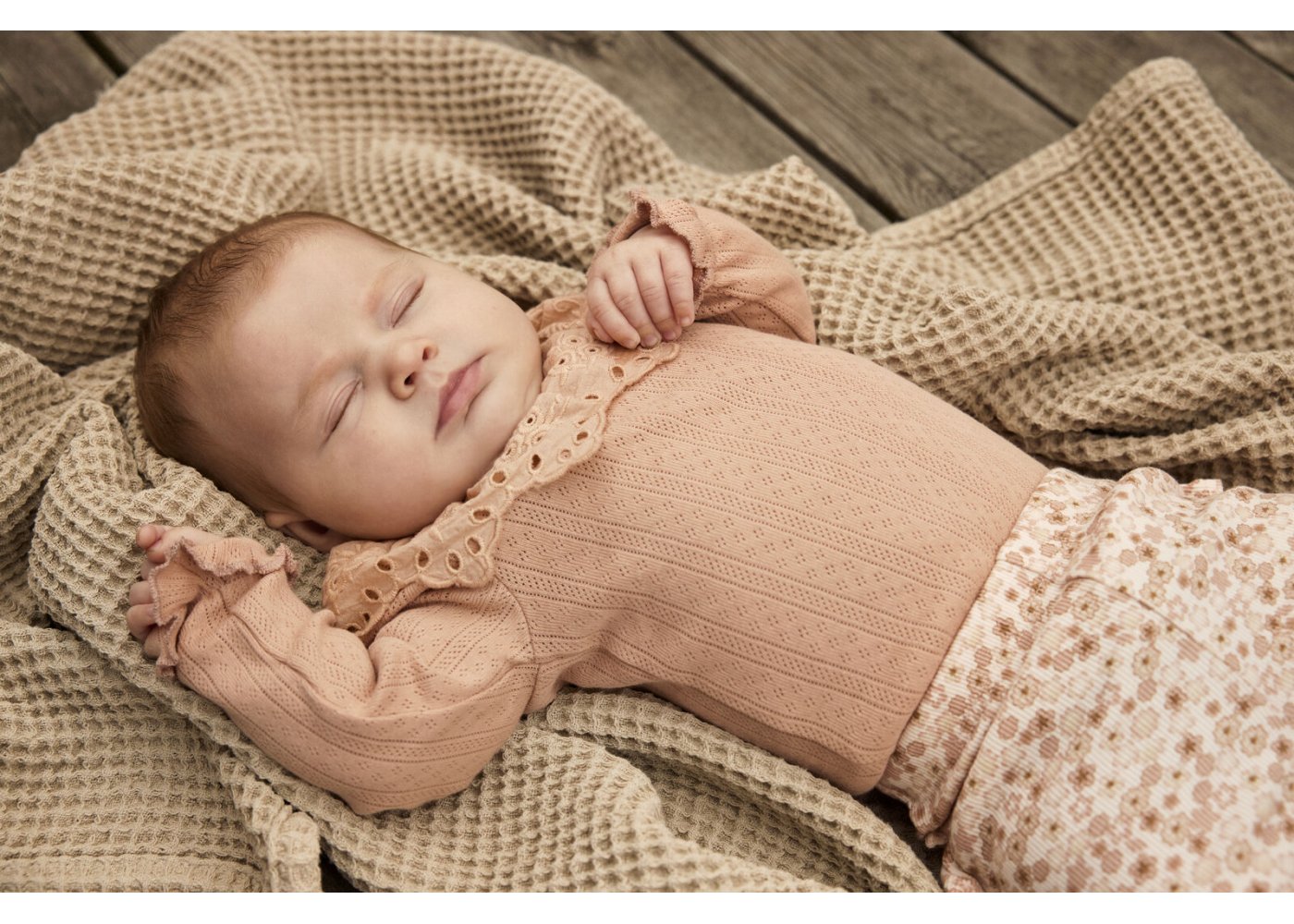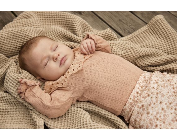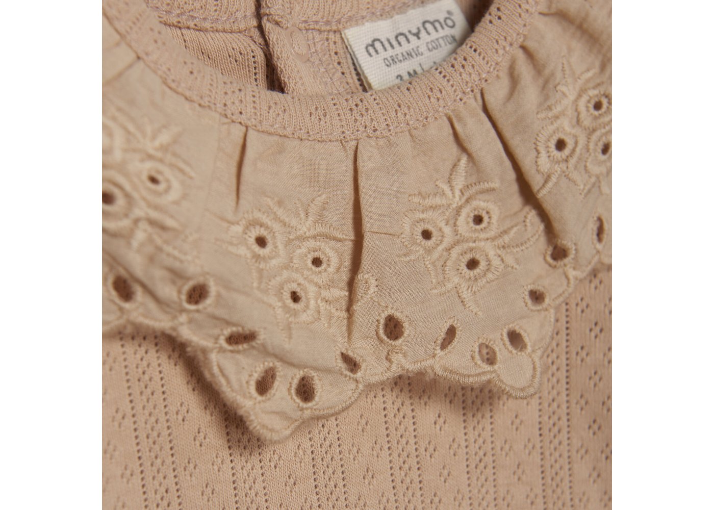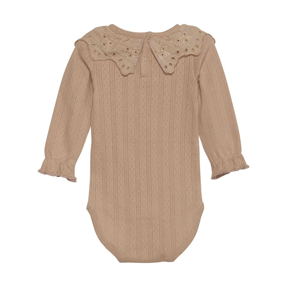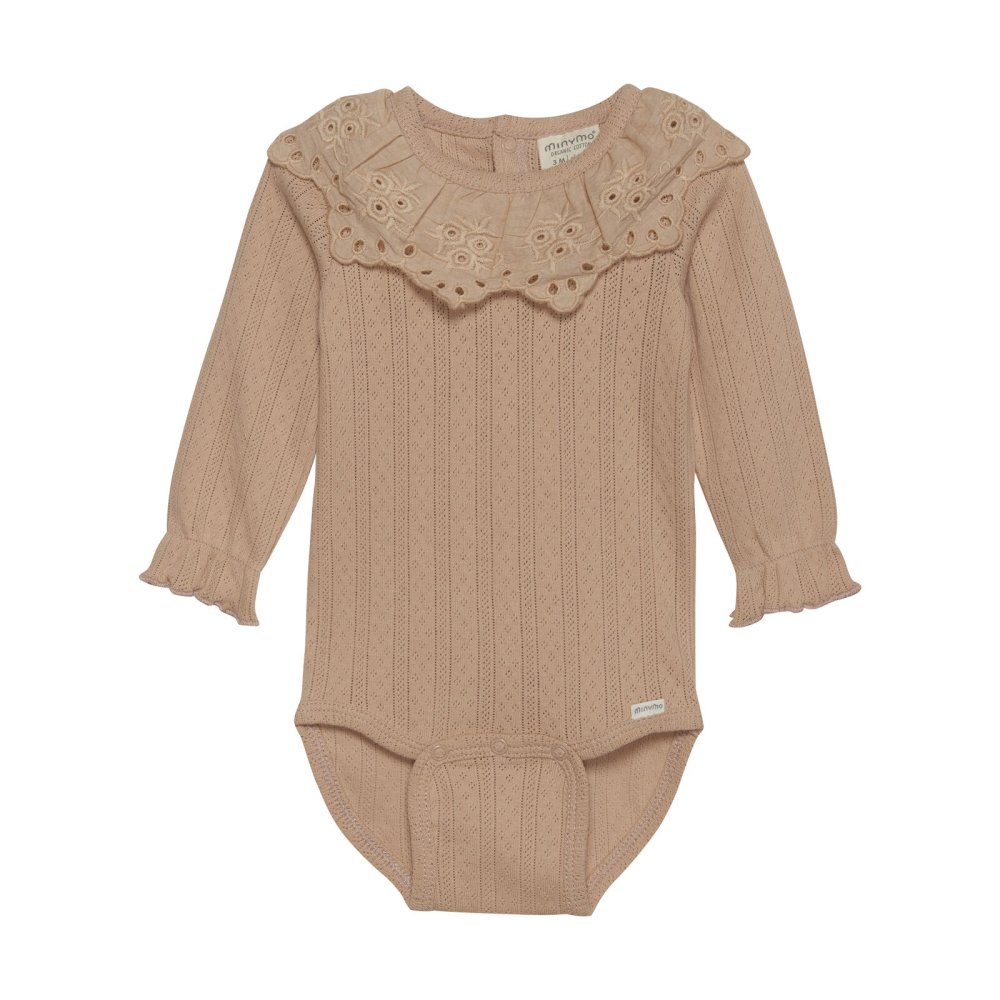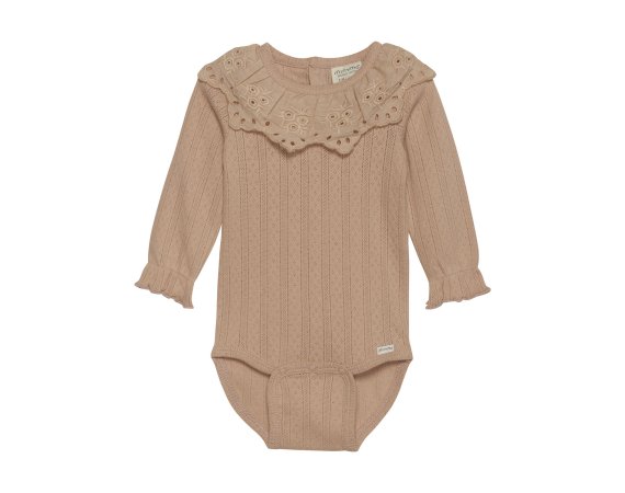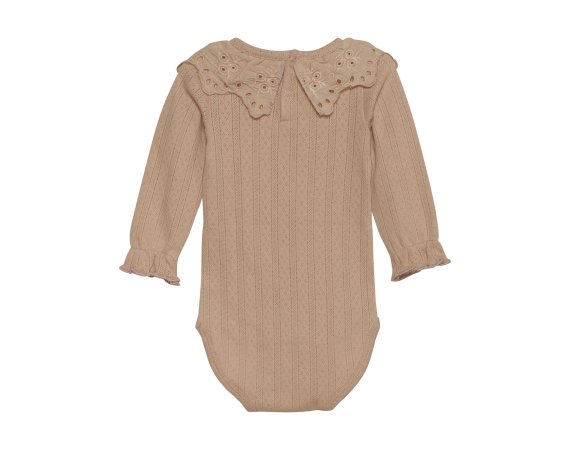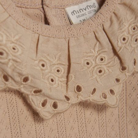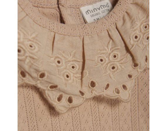 Yndig body med pointelle mønster og blondekrave fra Minymo.