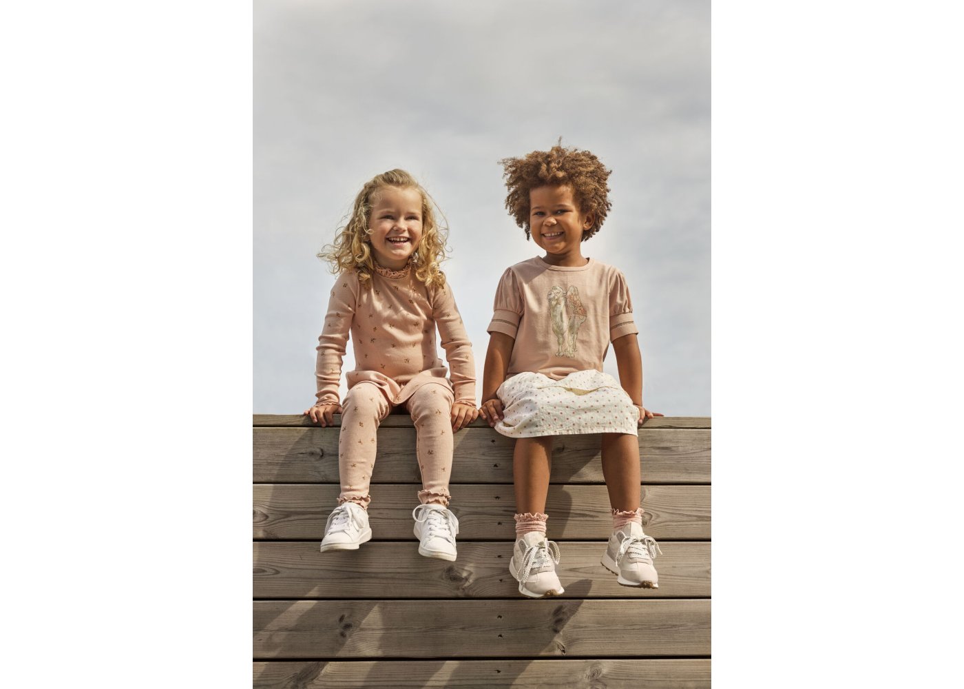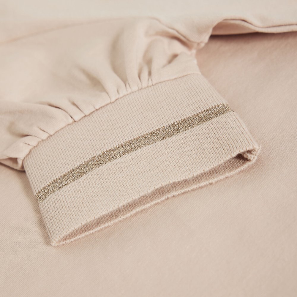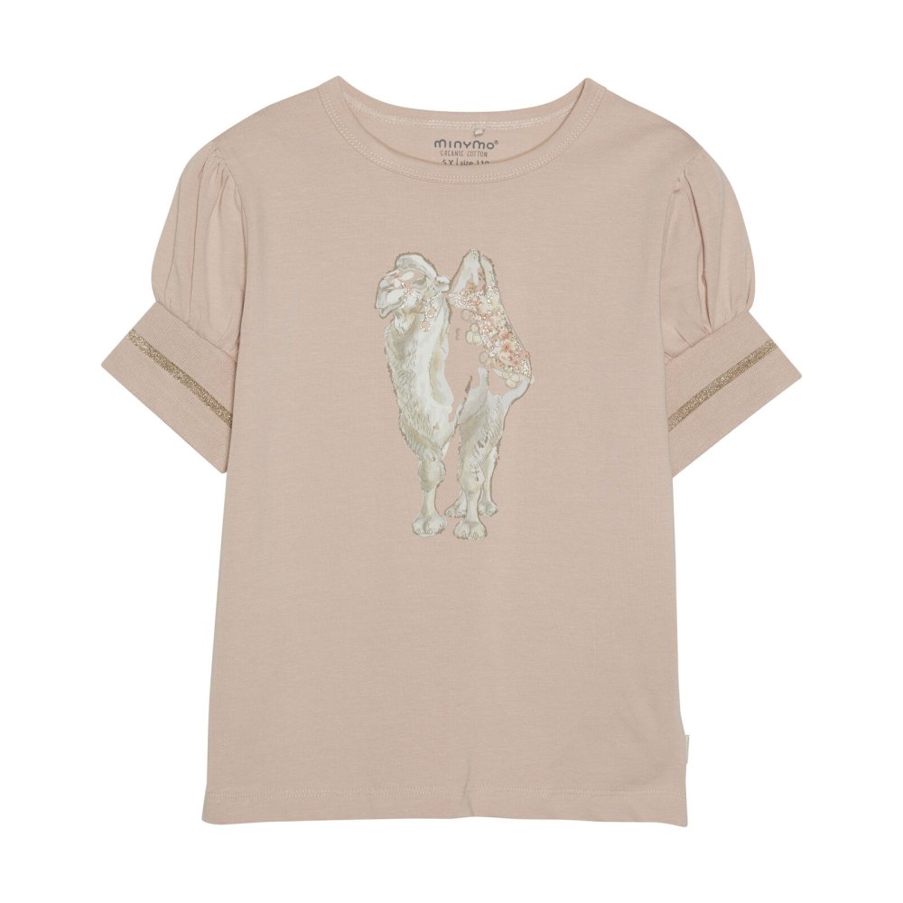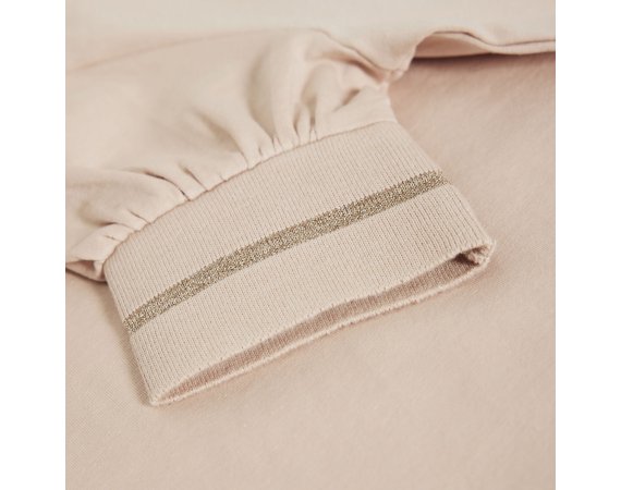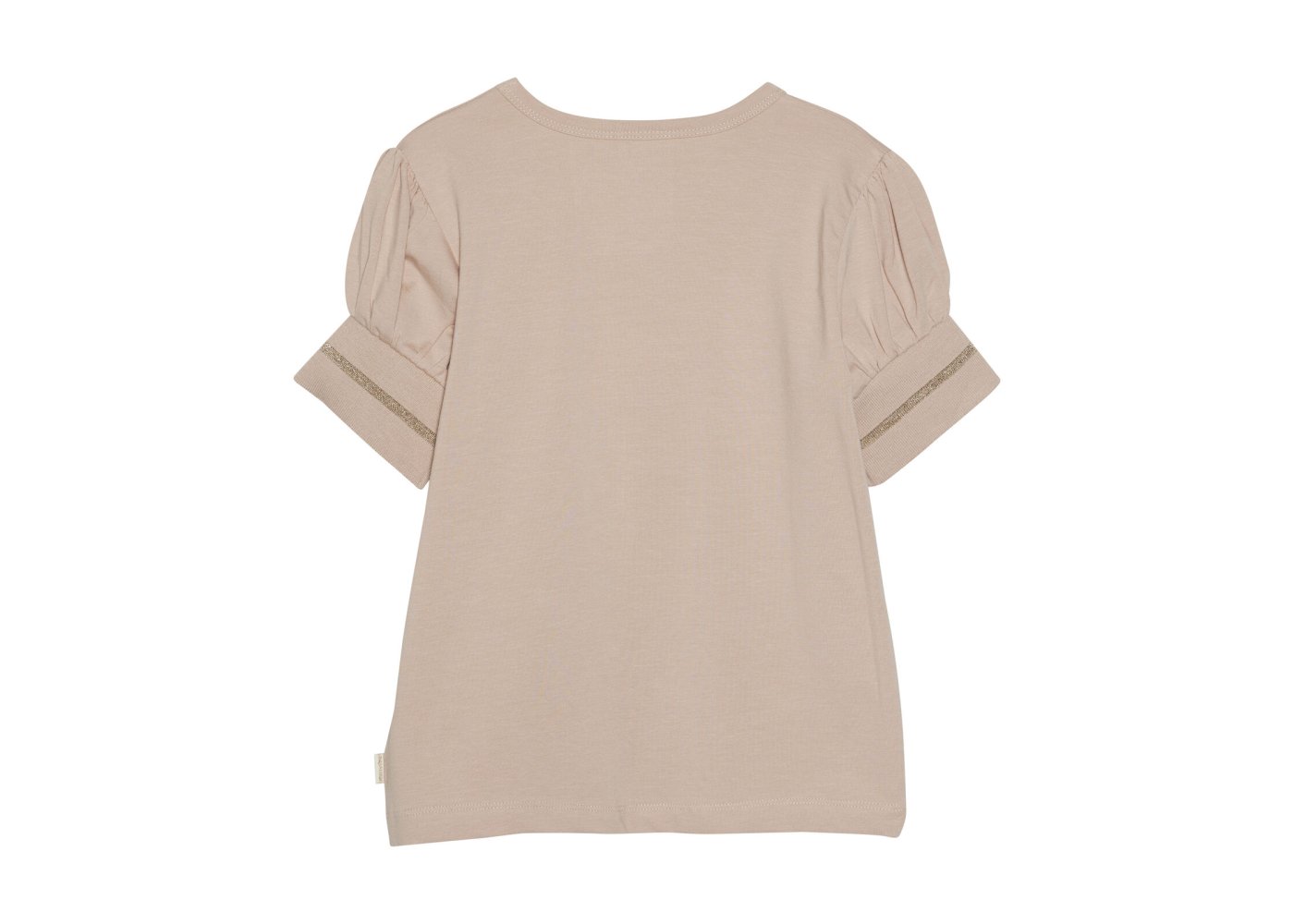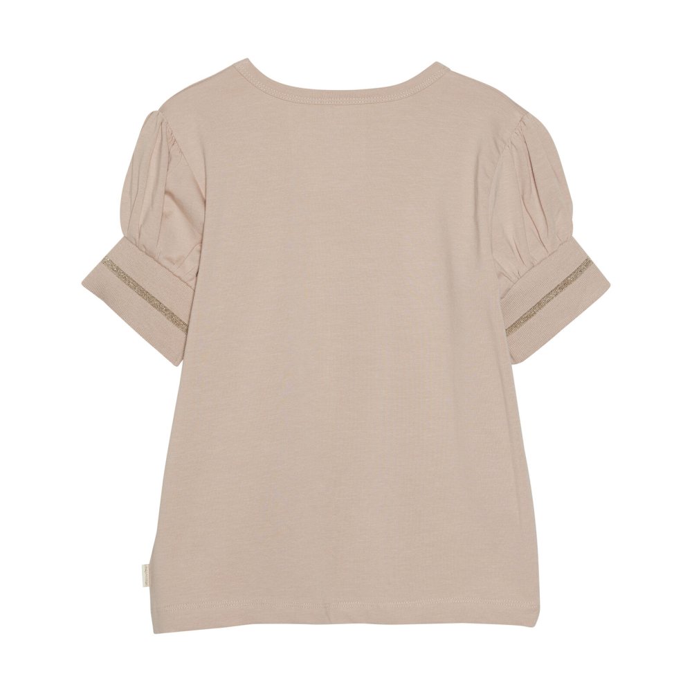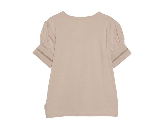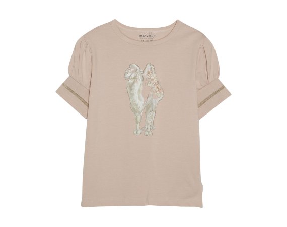 Yndig jersey bluse med dromedar motiv foran.Blusen har pufærmer og flot bred rib med guldstribe på ærmer.