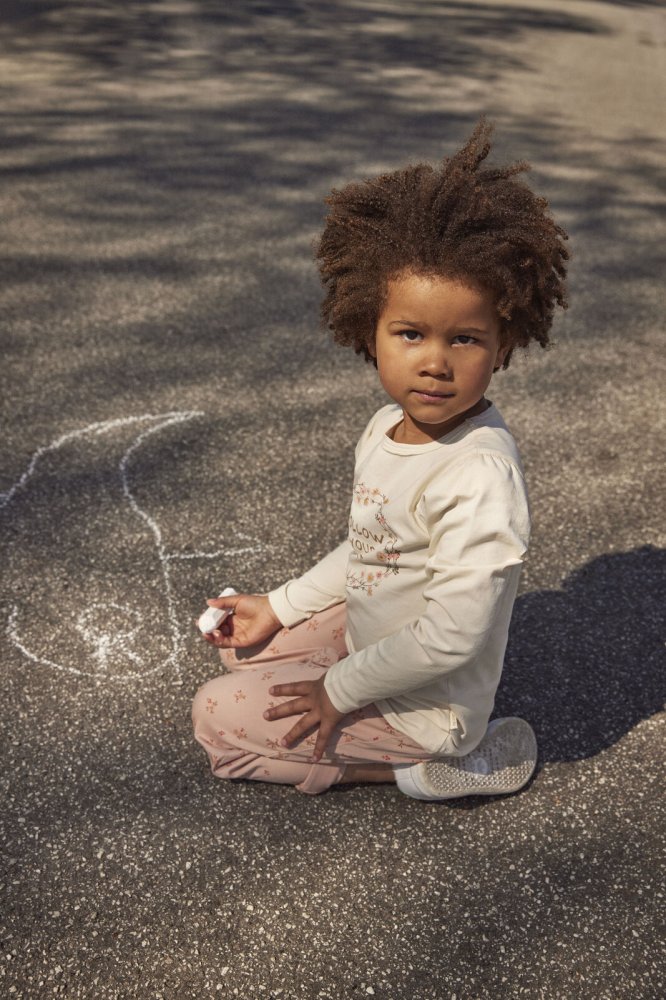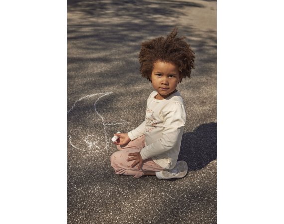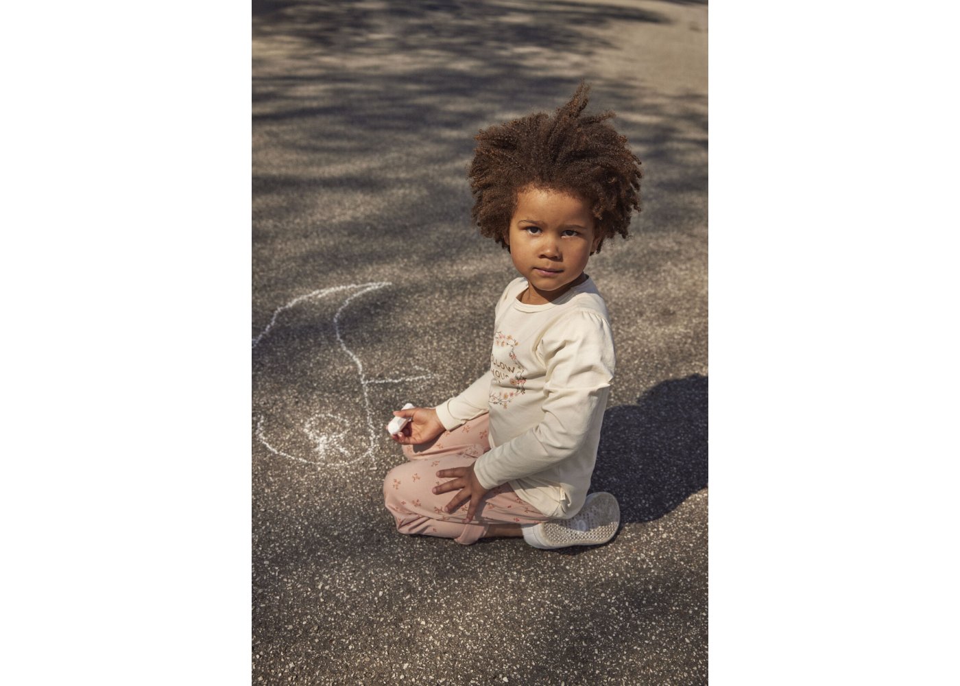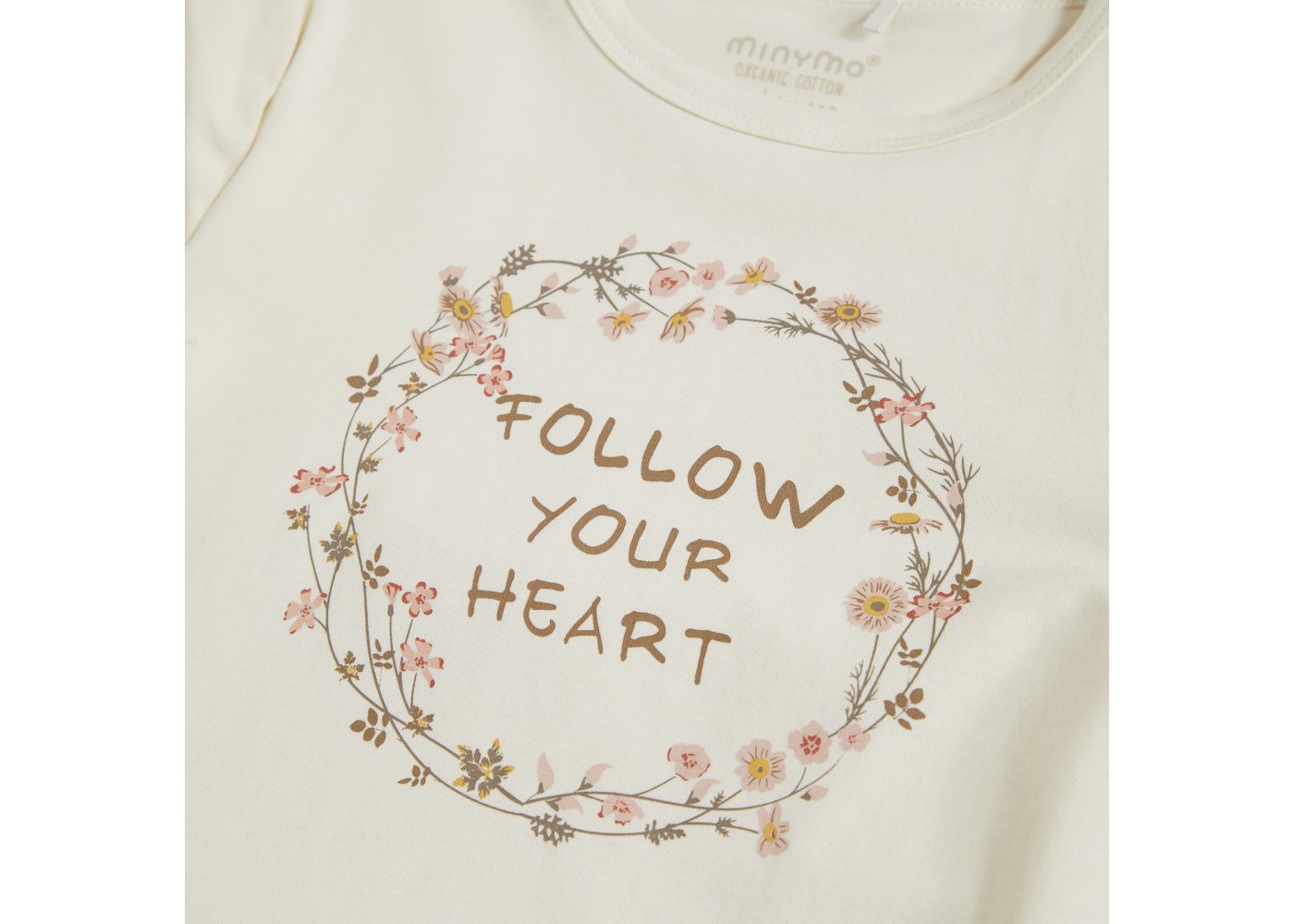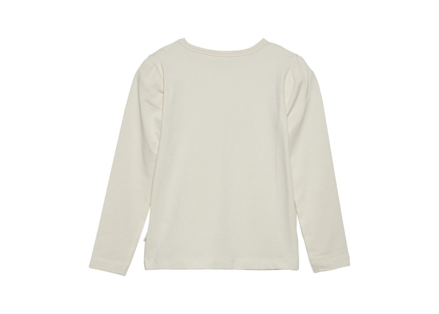 Fin langærmet t-shirt i lækker jersey kvalitet fra Minymo.T-shirten har en fin blomsterkrans foran, og er ensfarvet bagpå.