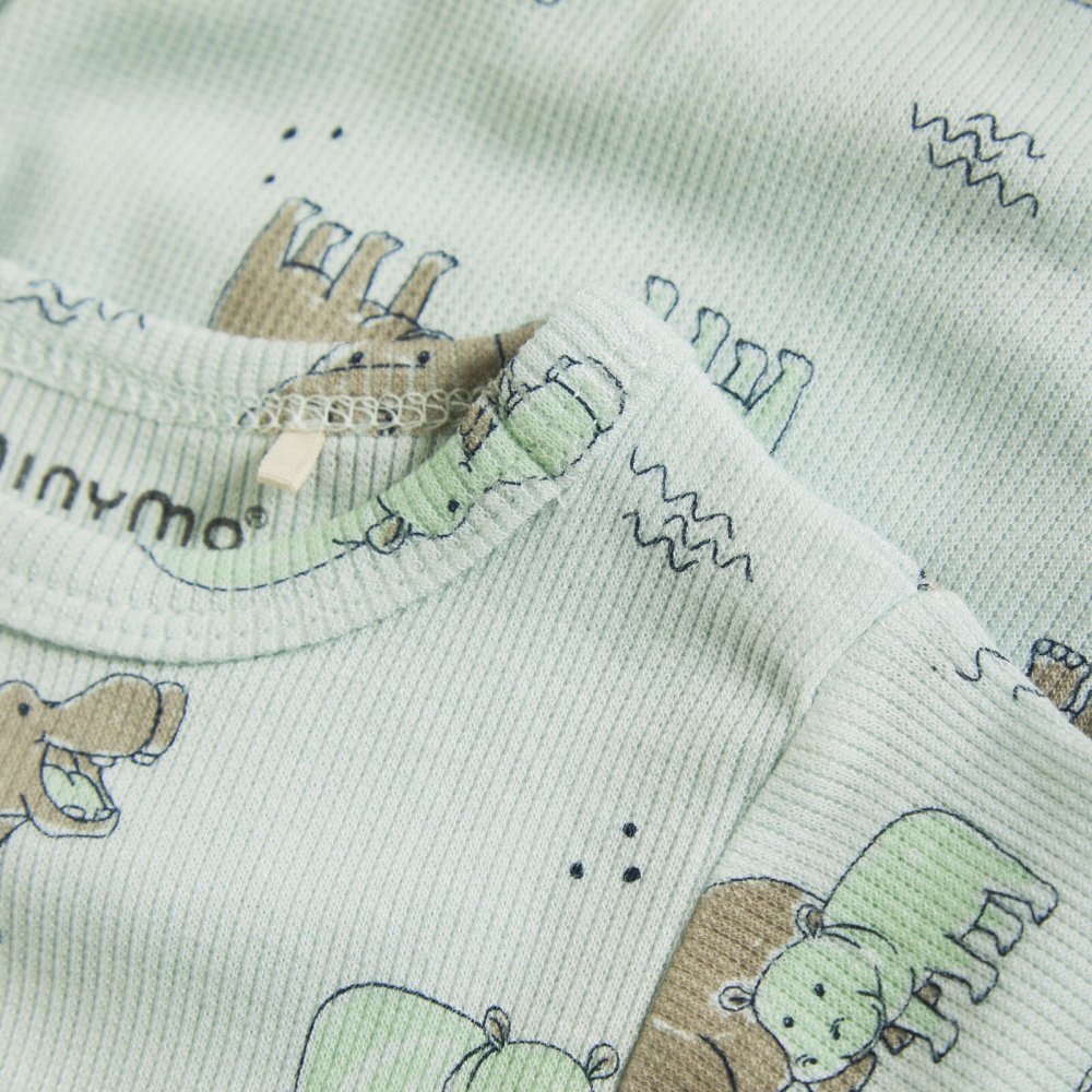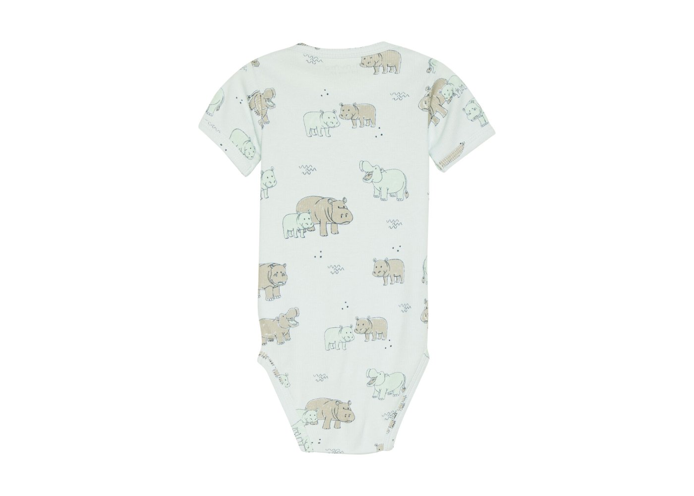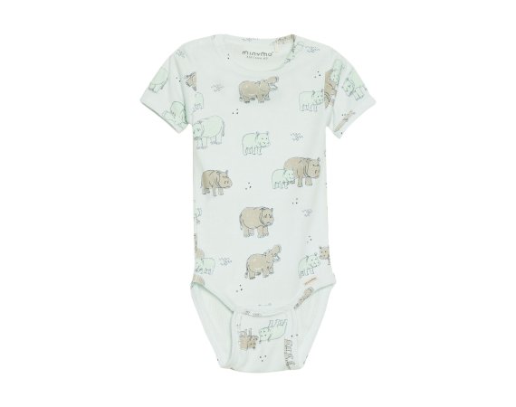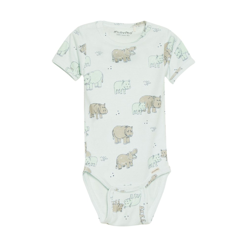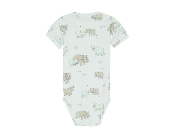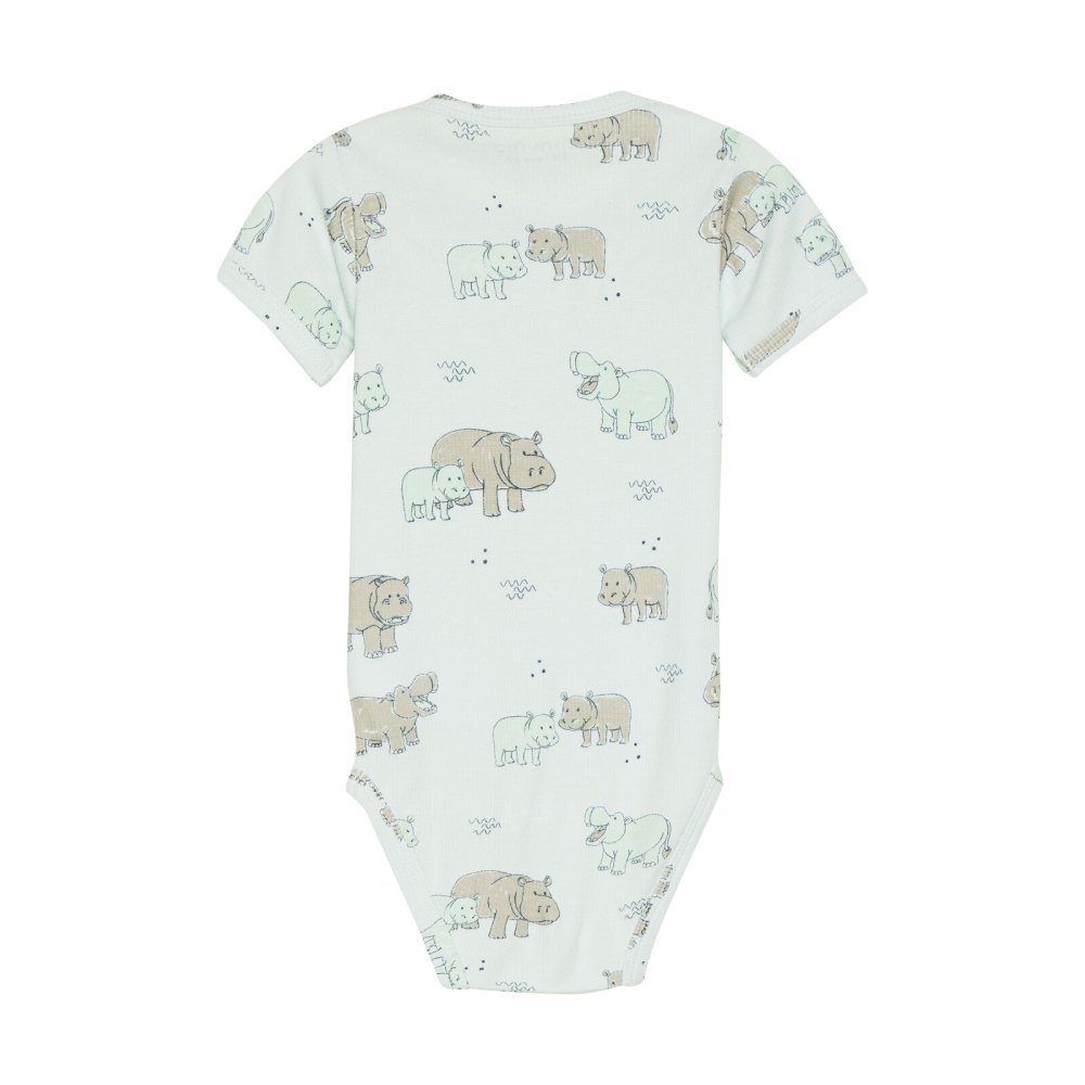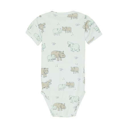 Super sød body med korte ærmer og flodheste både foran og bagpå.