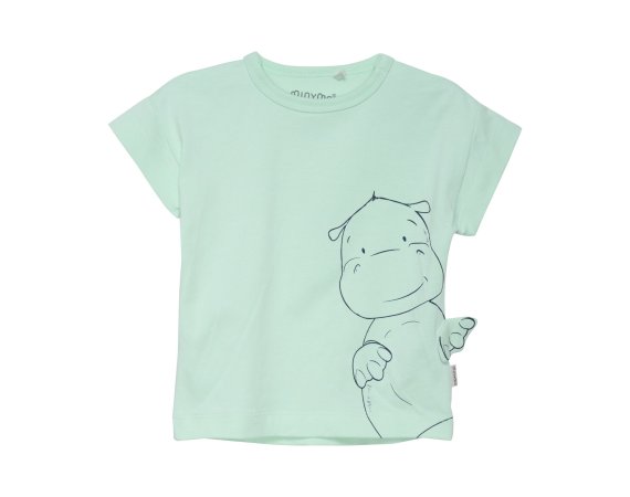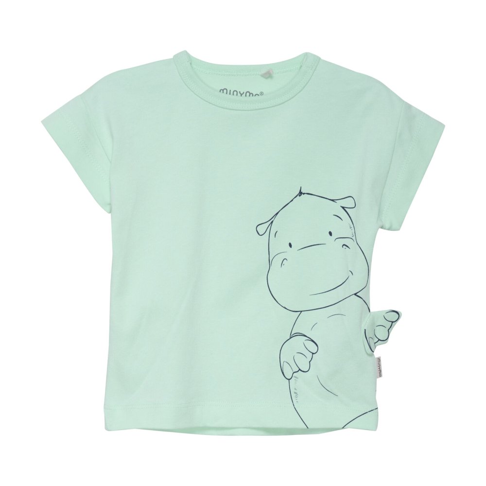 Sød kortærmet t-shirt med sjovt flodhestemotiv foran fra Minymo.
