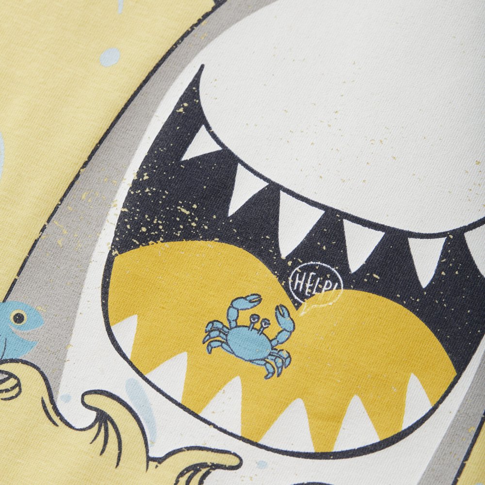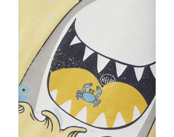 Sjov jersey t-shirt med hajprint fra Minymo.T-shirten er ensfarvet bagpå, og er fremstillet i en dejlig og strækbar bomuldskvalitet.Tekstil: 95% økologisk bomuld, 5% elastan