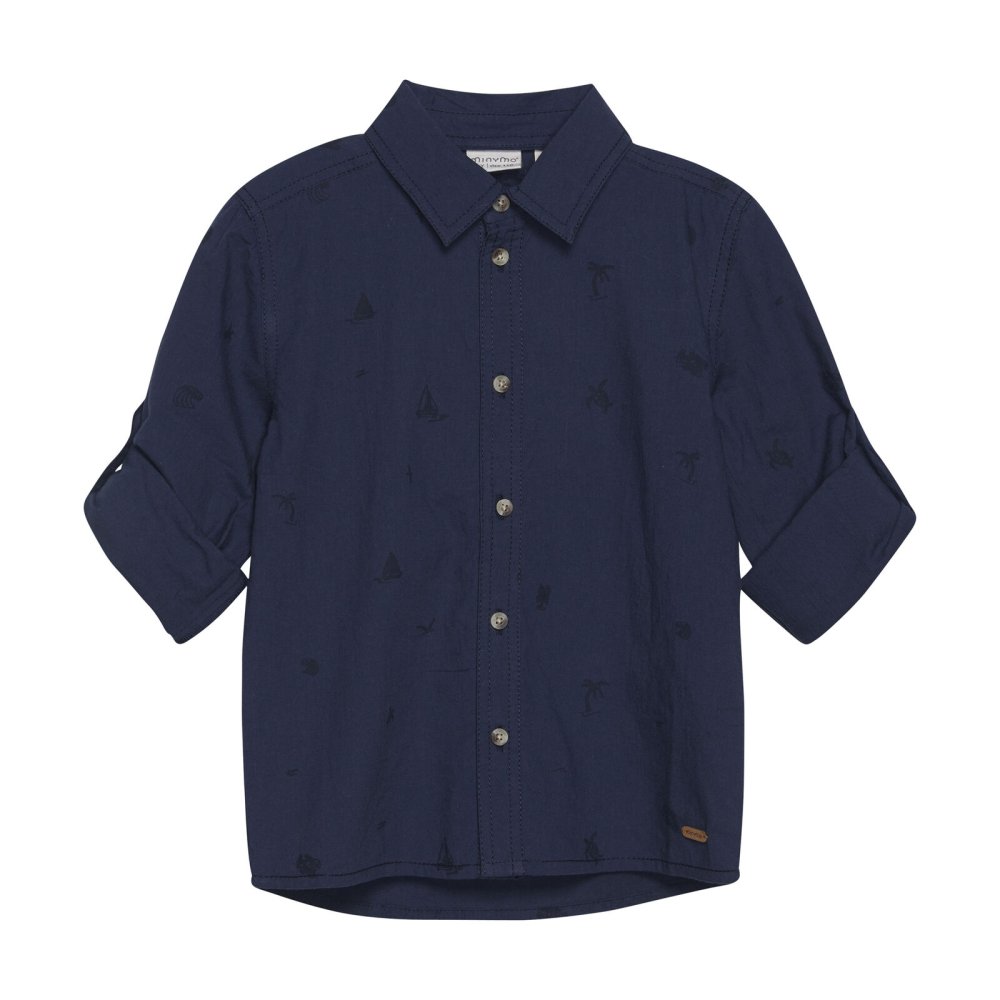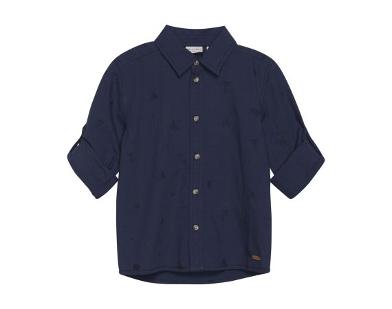 Smart skjorte fra Minymo. Skjorten har lange ærmer med knap, der gør det muligt af korte ærmerne.Skjorten har en fin krave, kog lukkes med knapper foran.