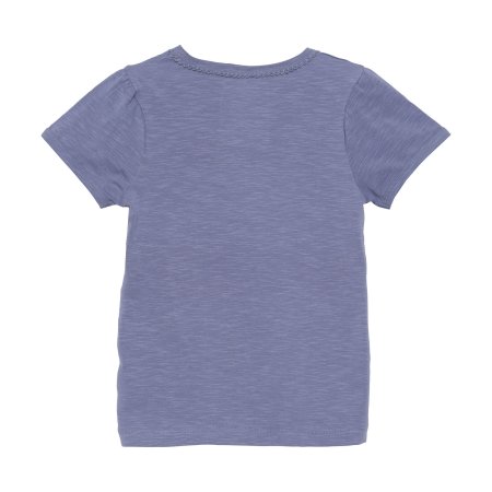 T-shirten har en rund halsudskæring med blondekant og rynk på skuldre, der giver lidt puf effekt.
