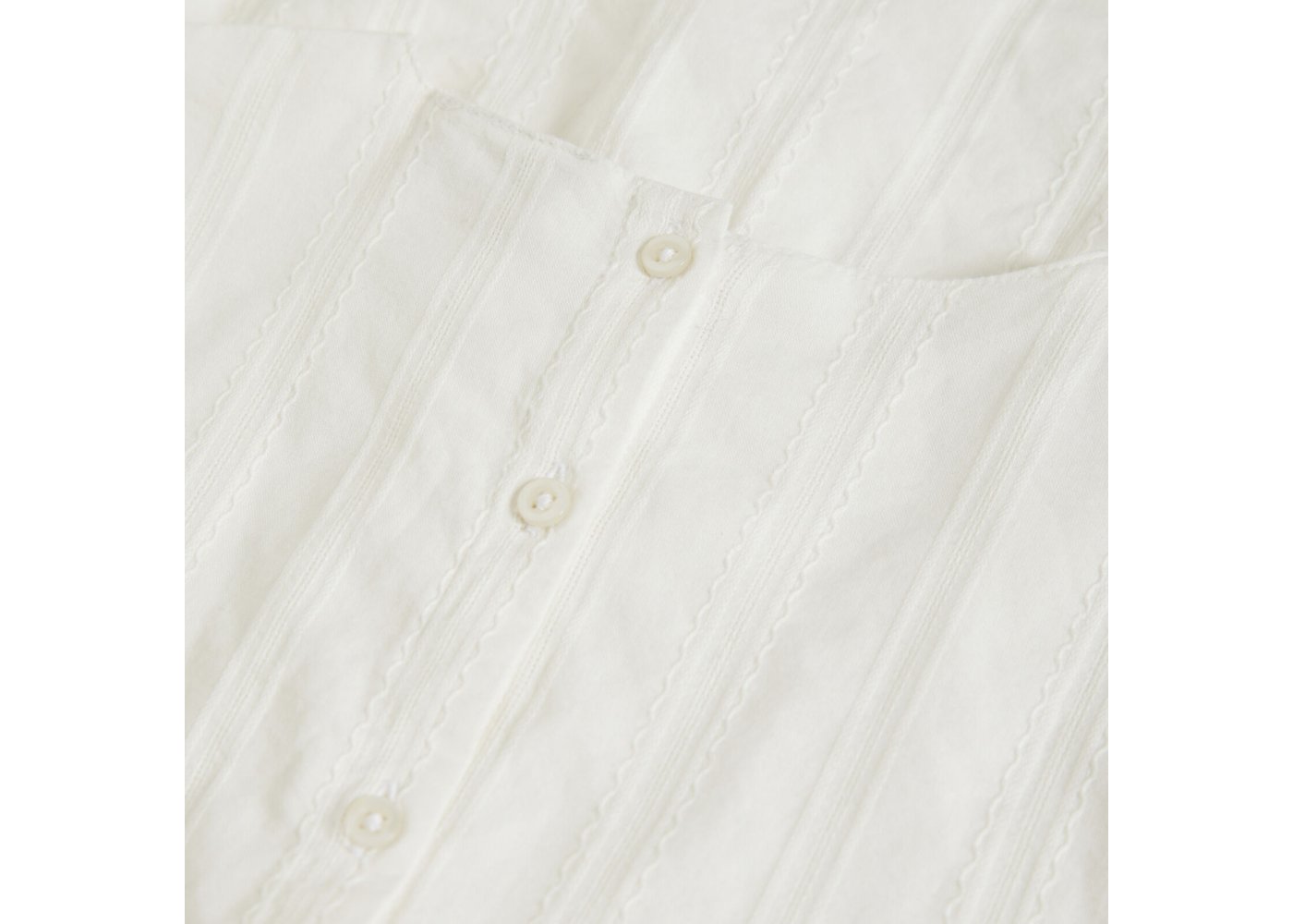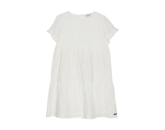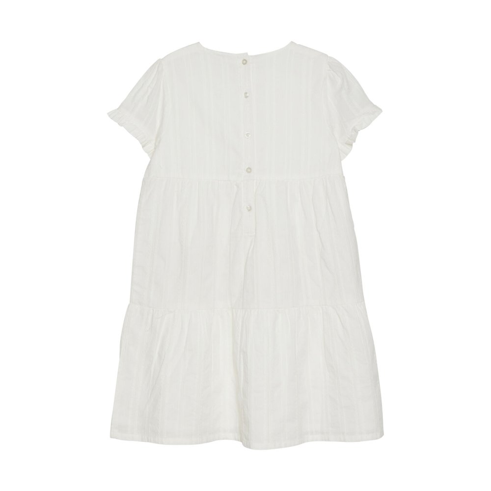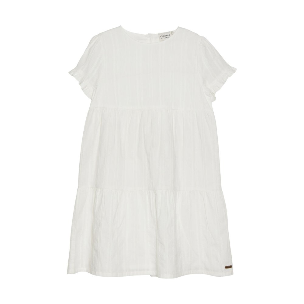 Smuk hvid kortærmet kjole i vævet bomuld med mønster fra Minymo.
