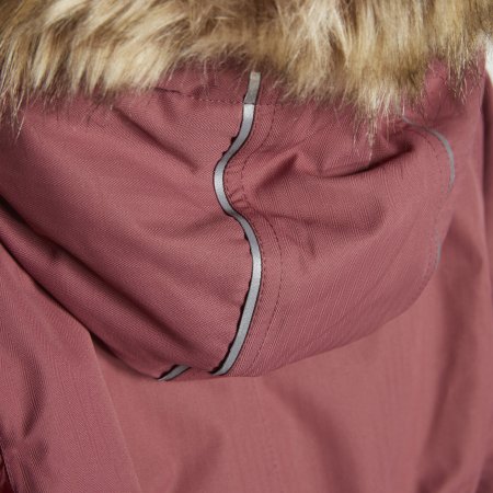 Flyverdragten er foret med en varm og blød fleece. Den har lynlås med dobbelt vindstolpe, hvor den udvendige lukkes med velcro og trykknapper. Den har en aftagelig hætte med fleecefoer og en aftagelig pelskant. Ærmer har et glatvævet foer, og håndled er godt beskyttede med snefang og brede ribkanter.