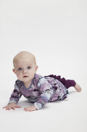 Lækker langærmet kjole med sælprint og guldsyninger fra Me Too Kjolen har en indsyet body, og kravler derfor ikke kravler op. Tekstil: 95% økologisk bomuld, 5% elastan