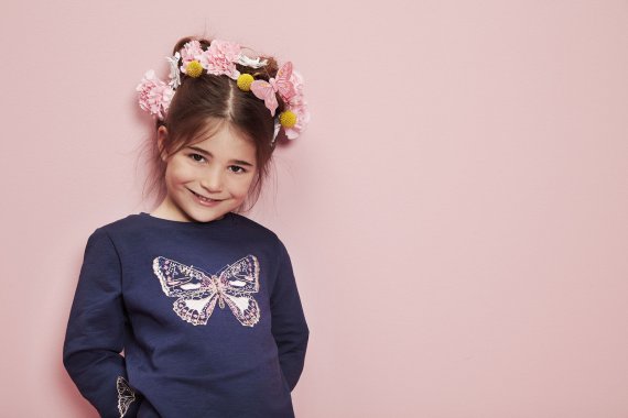 Super sej tunika med sommerfugle broderi på bryst og ærmeTunikaen har ribkant i hals, en bred rib ved håndled og bund og en smart slids i ribkanten forneden, der gør den ekstra smart.