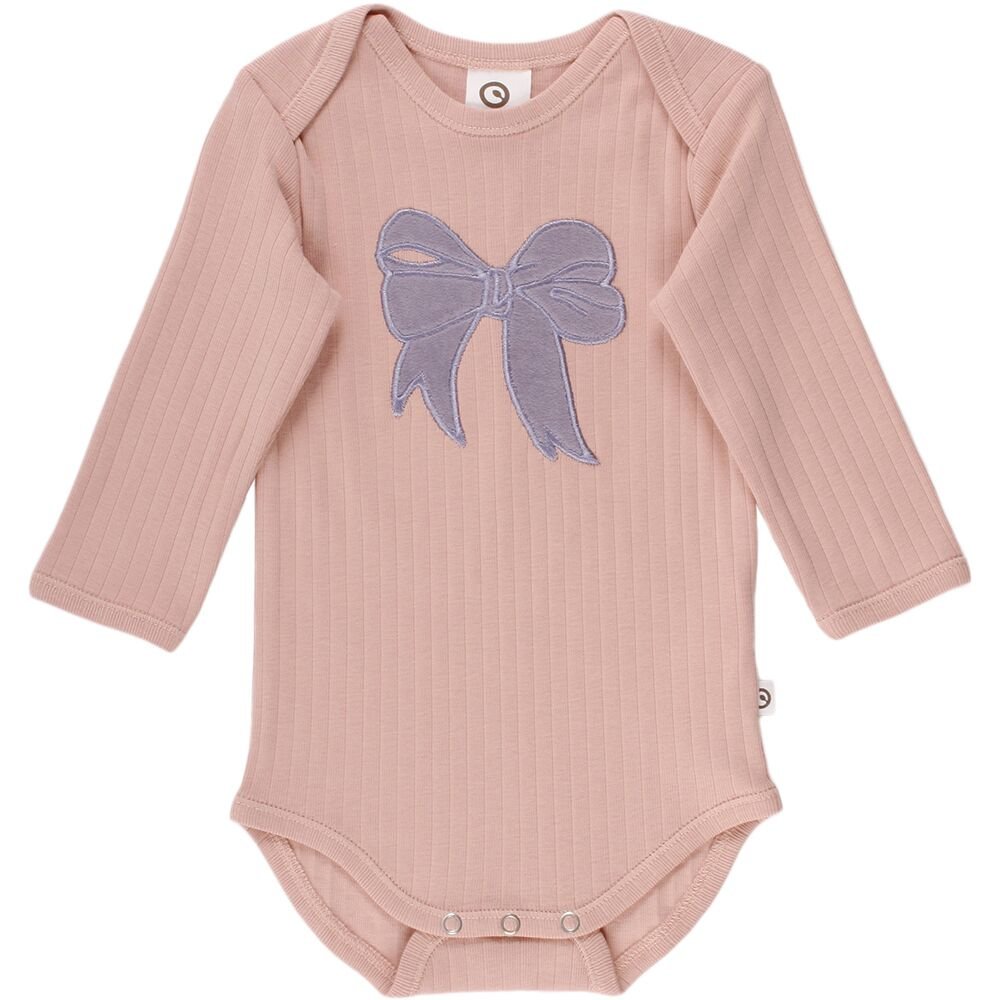 Sød body med broderet sløjfe til både hverdag og festBodyen lukkes mellem ben med trykknapper og har kuvertlukning ved skuldre.