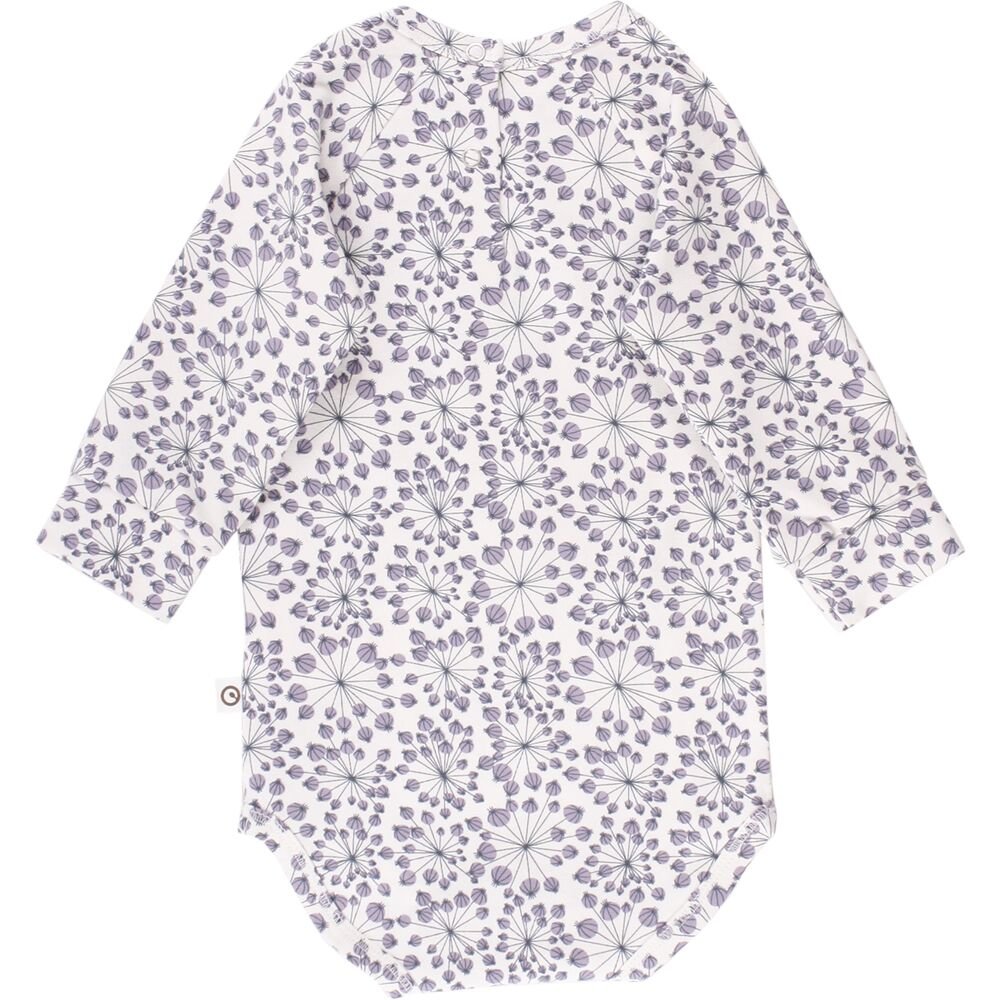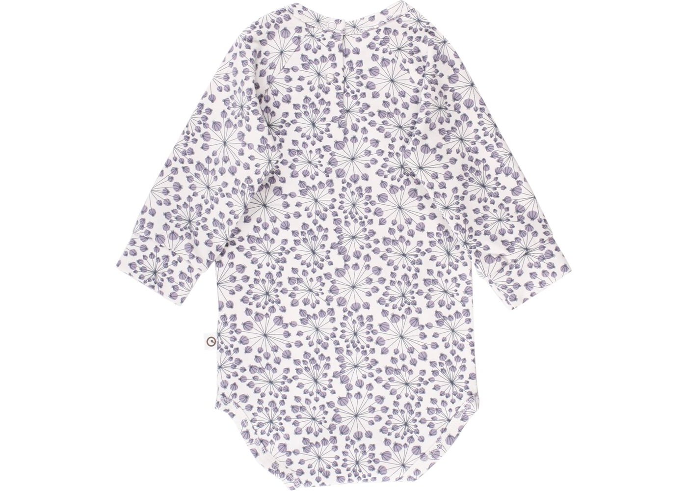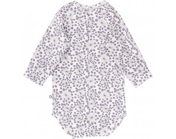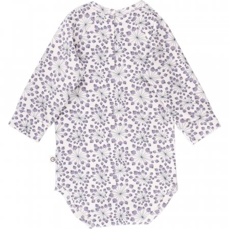 Smart body med blomster print og flæse i halsudskæringBodyen har fast kant i alle åbninger og lukkes med trykknapper i nakken og imellem ben.