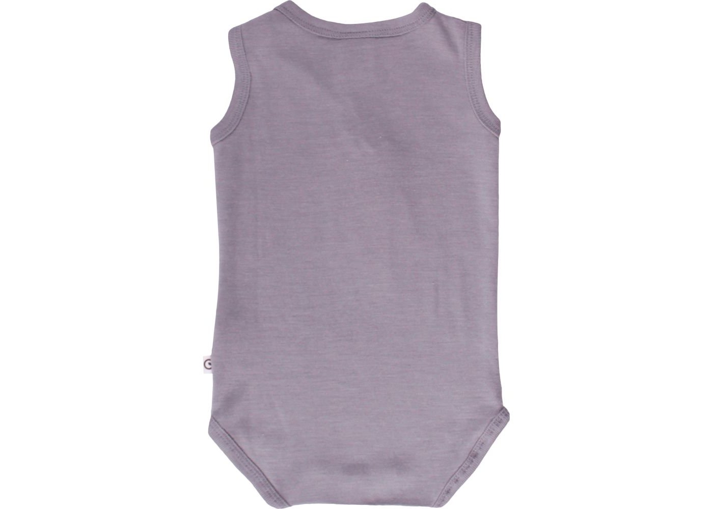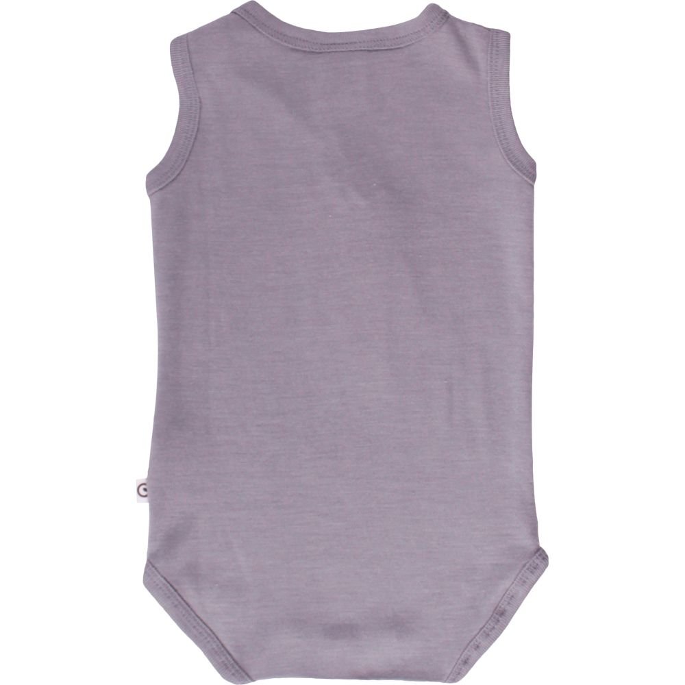 Blød body til drenge med kuvertlukning og uden ærmer i en lækker uld/silke blanding.Tekstil: 70% økologisk Merino uld 30% silke.