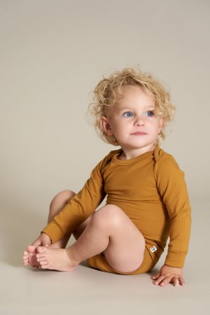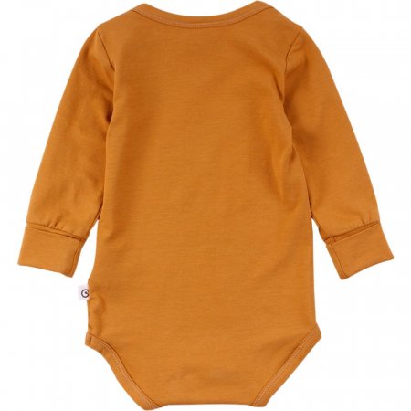 Klassisk og dejlig langærmet body.Bodyen har ombuk ved håndled, der gør den brugbar i længere tid, kuvertlukning og trykknapper imellem ben.