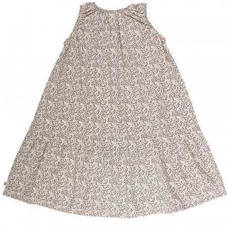 Smuk kjole fra müsli i en lækker let, luftig og strækbar kvalitet.Kjolen har elastik i halsåbning og ved arme. Den har et fint feminint flæse skørt for neden. Kjolen er i en fin creme farve med print af små grene i midnatsblå farve.