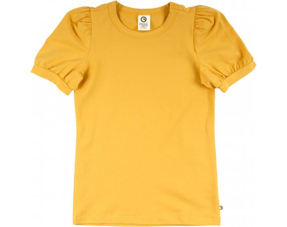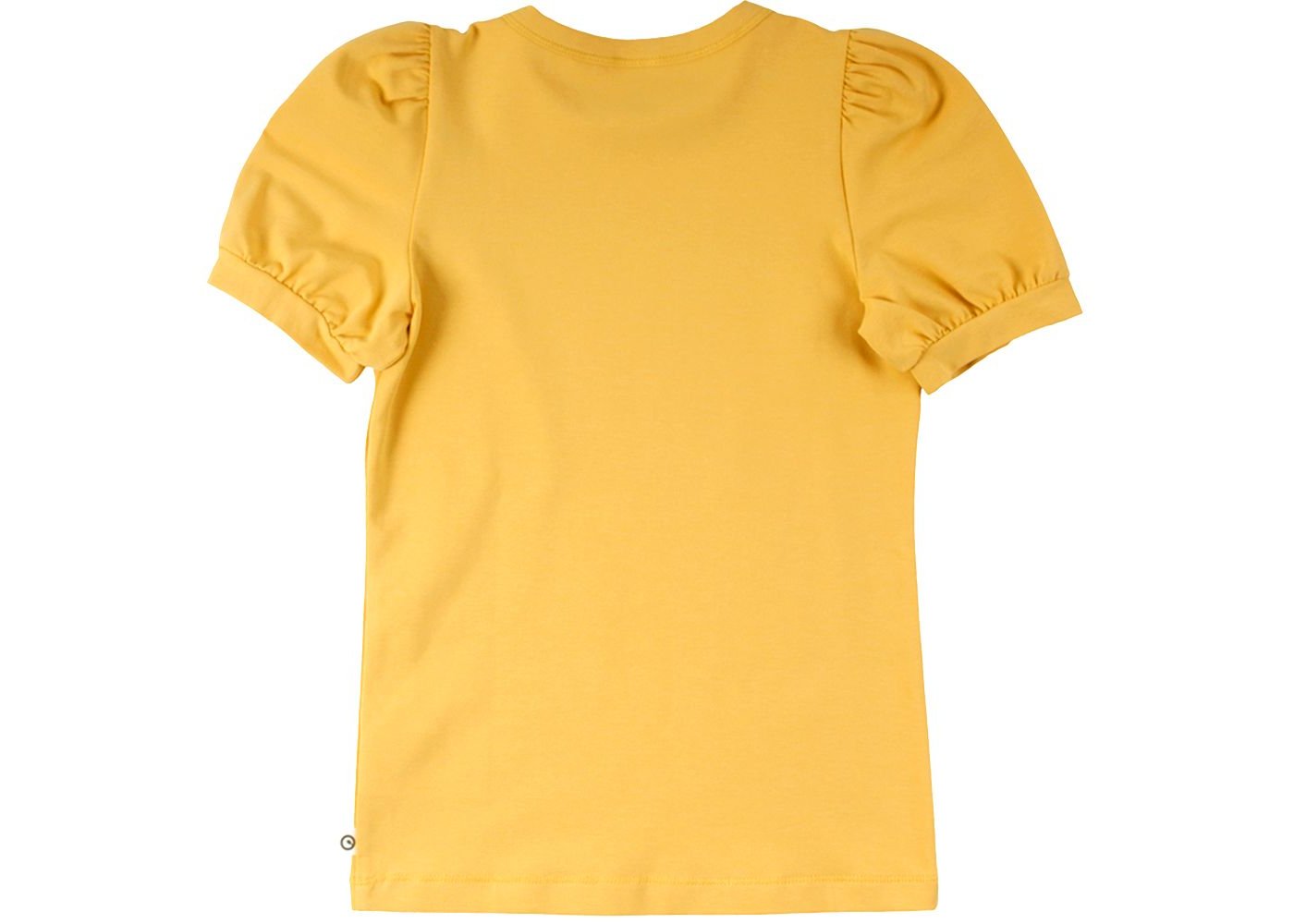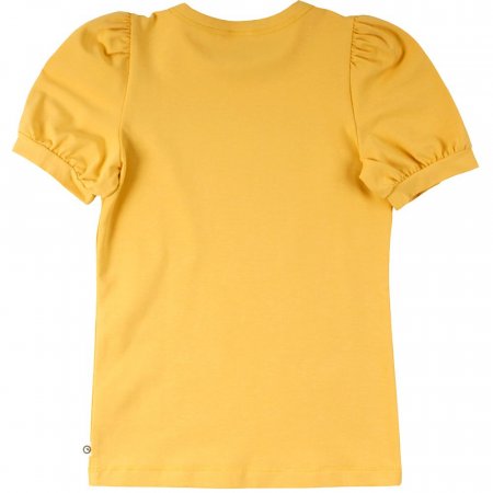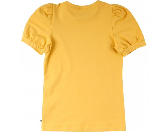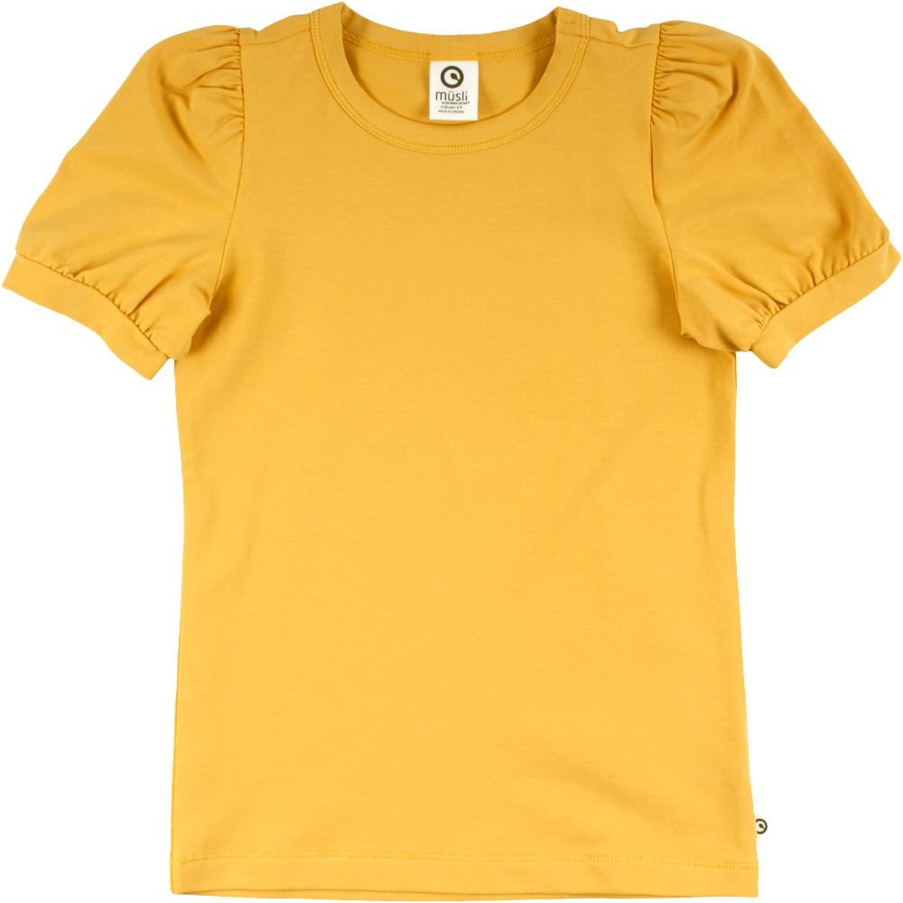 Flot gul kortærmet t-shirt fra müsli.T-shirten har pufærmer med rynk, der giver en super sødt, feminint look. Den er fremstillet i en lækker, blød og strækbar bomuldskvalitet, der gør den behagelig at have på.Tekstil: 95 % økologisk bomuld, 5 % elastan