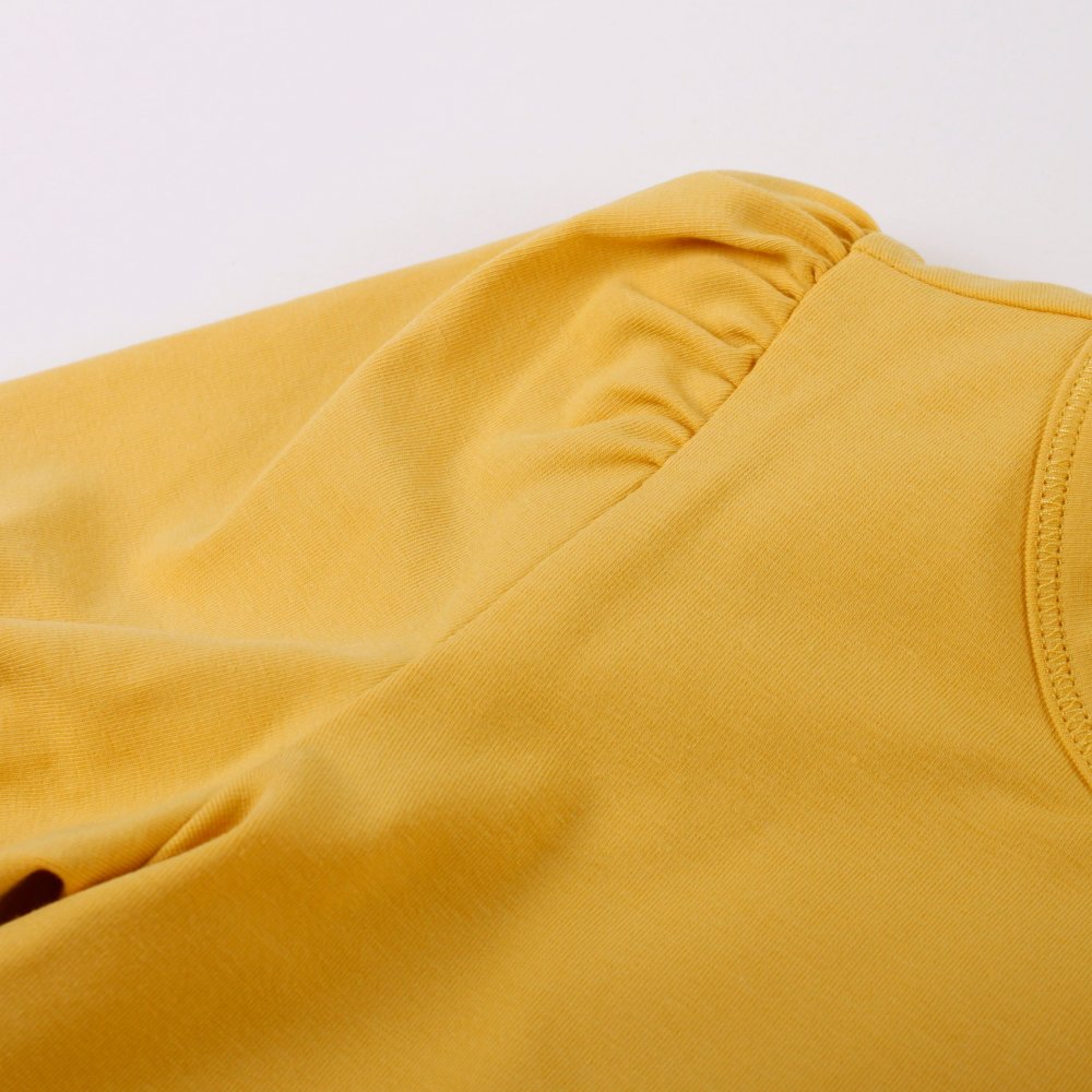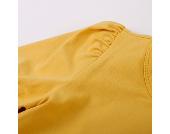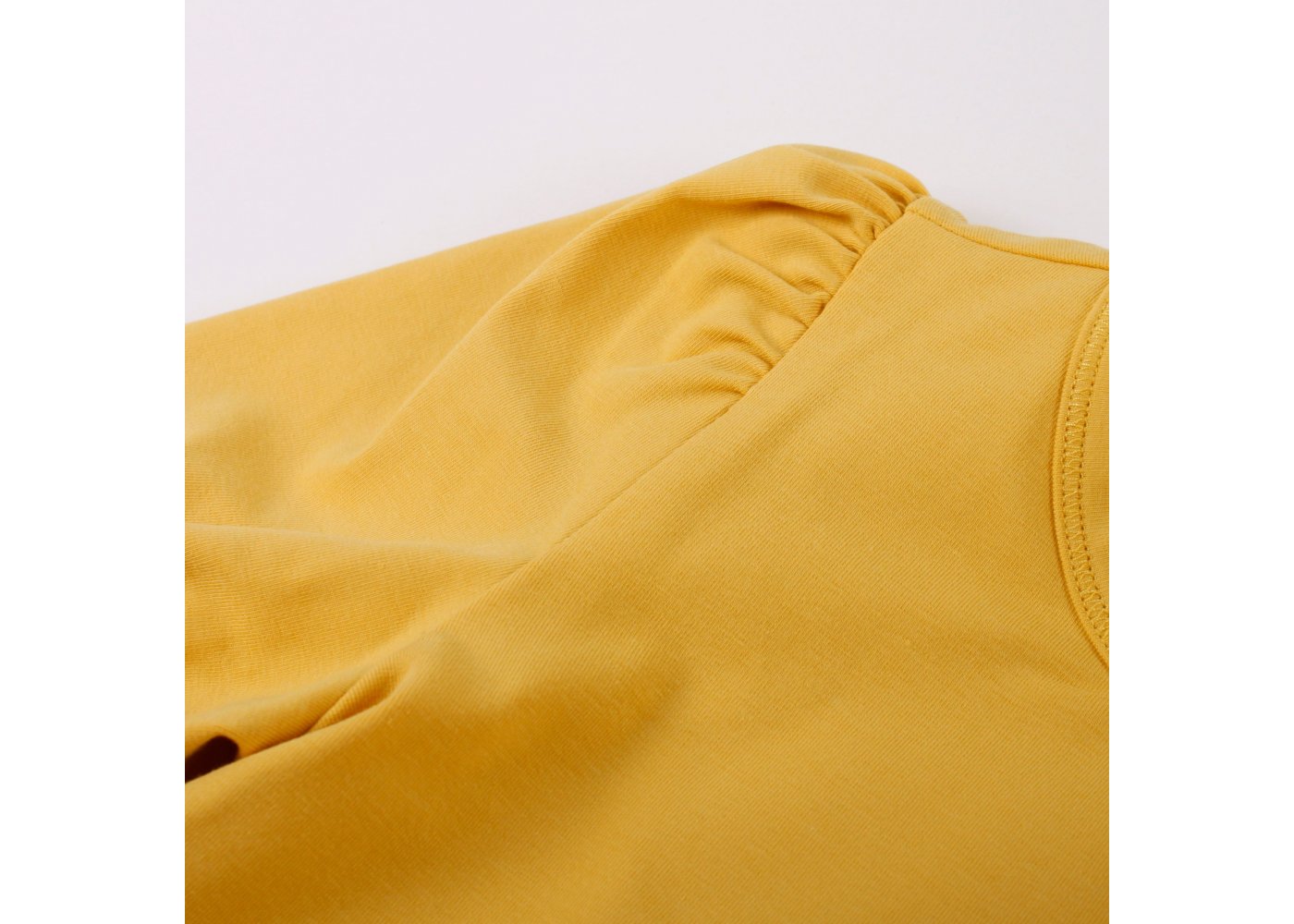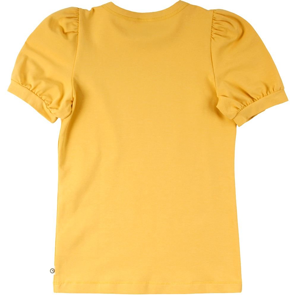 Flot gul kortærmet t-shirt fra müsli.T-shirten har pufærmer med rynk, der giver en super sødt, feminint look. Den er fremstillet i en lækker, blød og strækbar bomuldskvalitet, der gør den behagelig at have på.Tekstil: 95 % økologisk bomuld, 5 % elastan