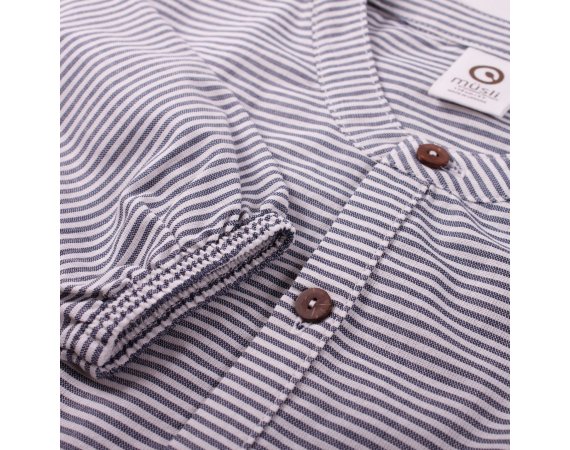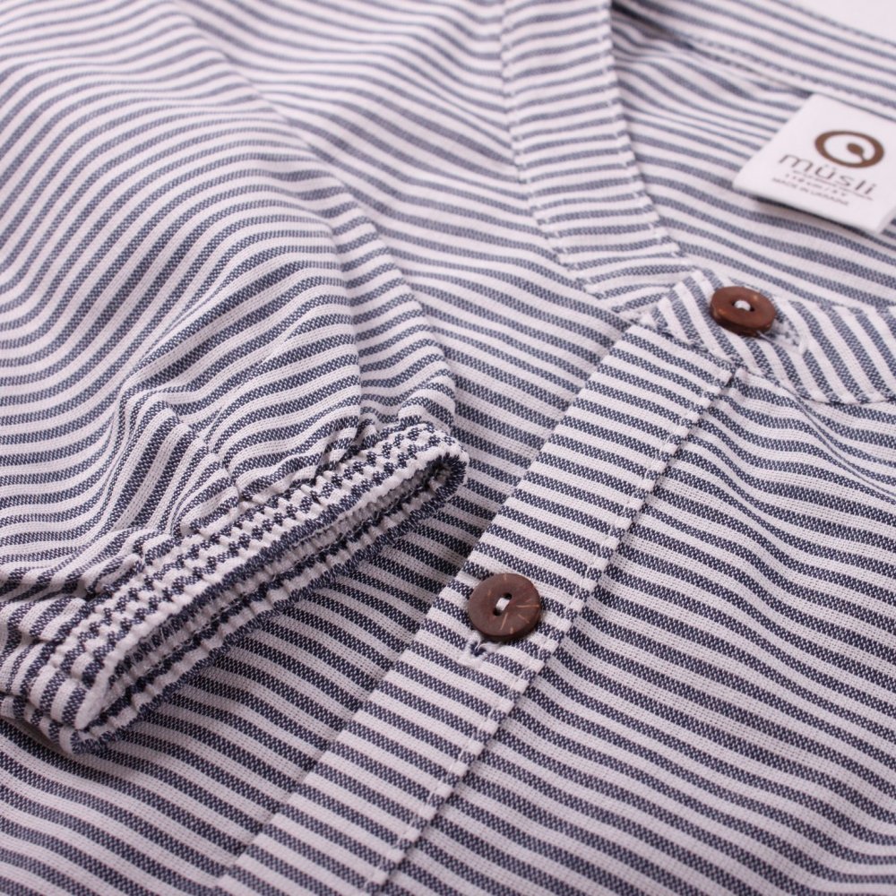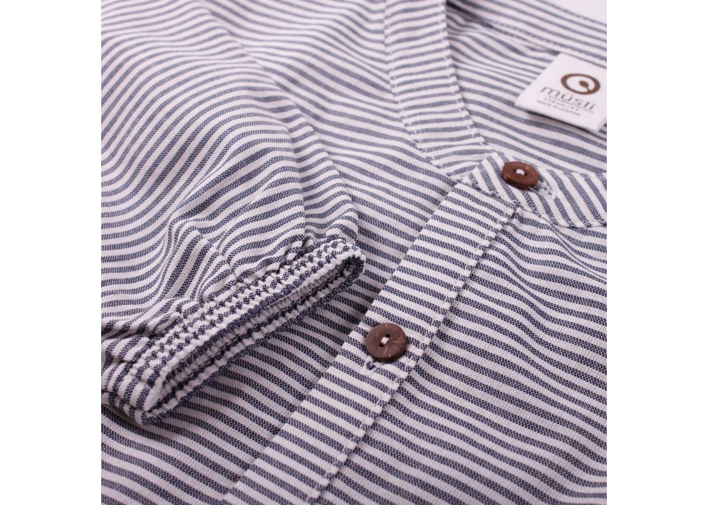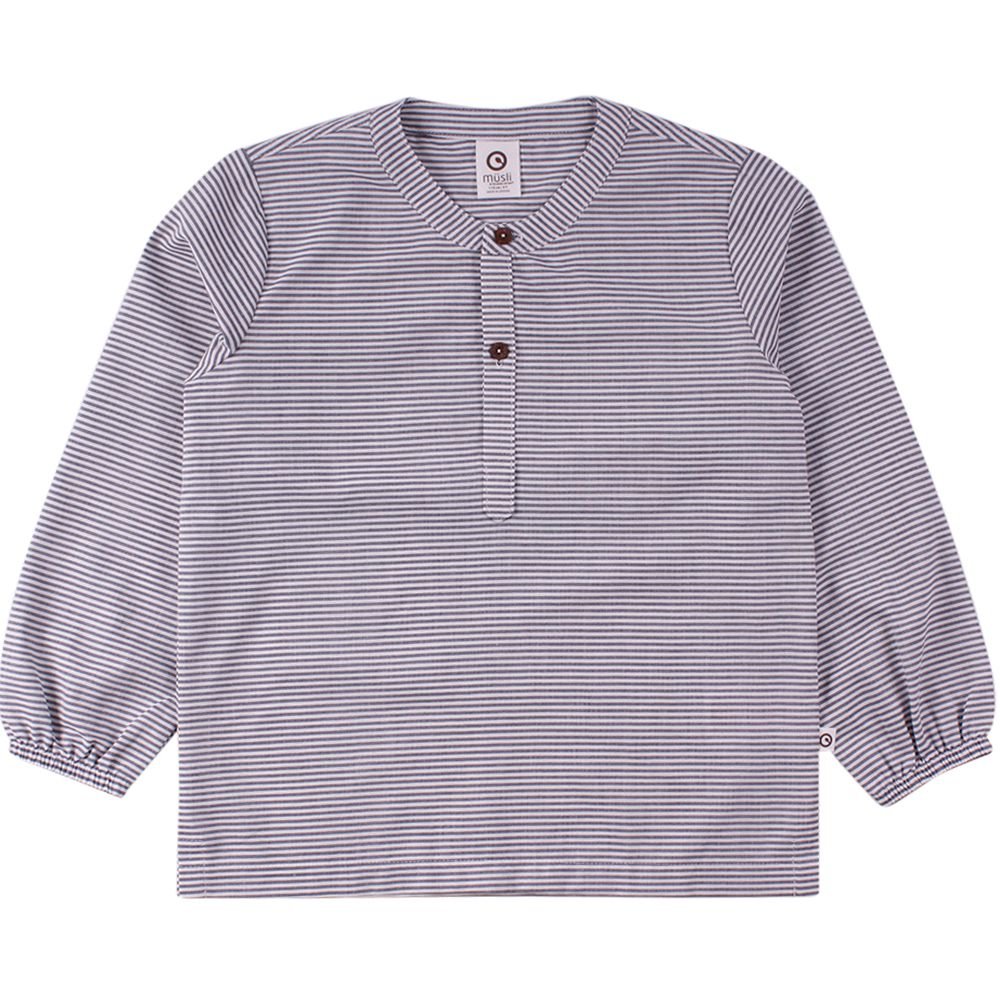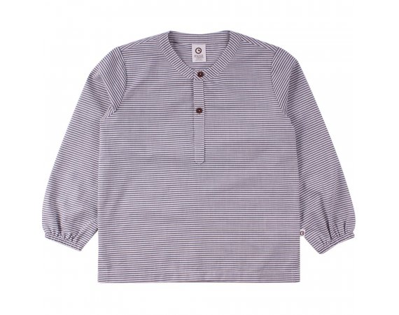 Sød blå- og hvidstribet skjorte med kinaflip fra müsli.Skjorten har lange ærmer med elastik ved håndled og knappelukning med kokosnød knapper foran. Den er fremstillet i en lækker, blød og strækbar bomuldskvalitet, der gør den behagelig at have på.Tekstil: 100 % økologisk bomuld