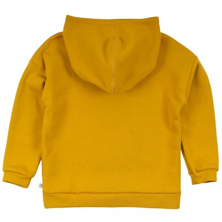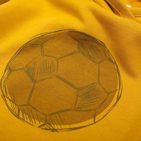 Smart hættetrøje i flot sennepsgul farve med fodboldprint.