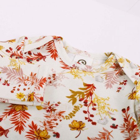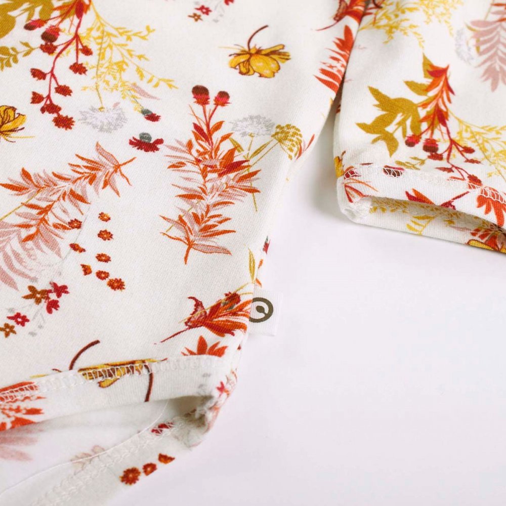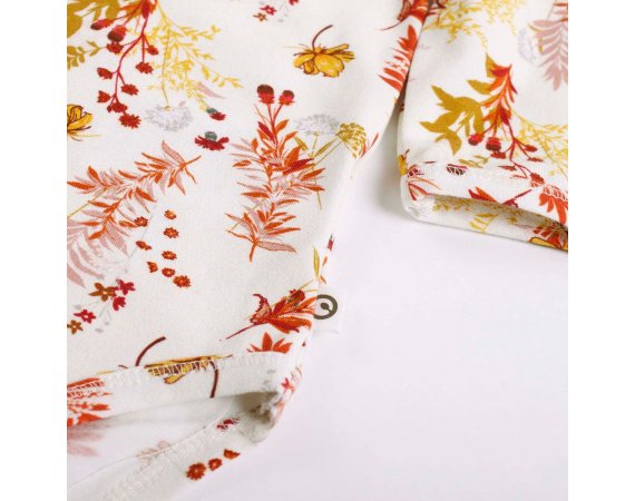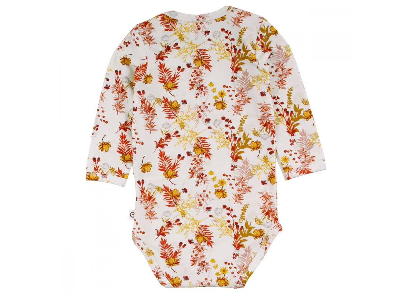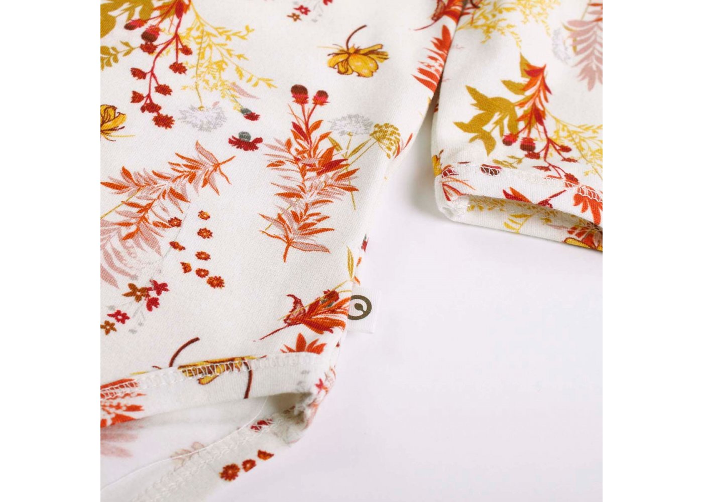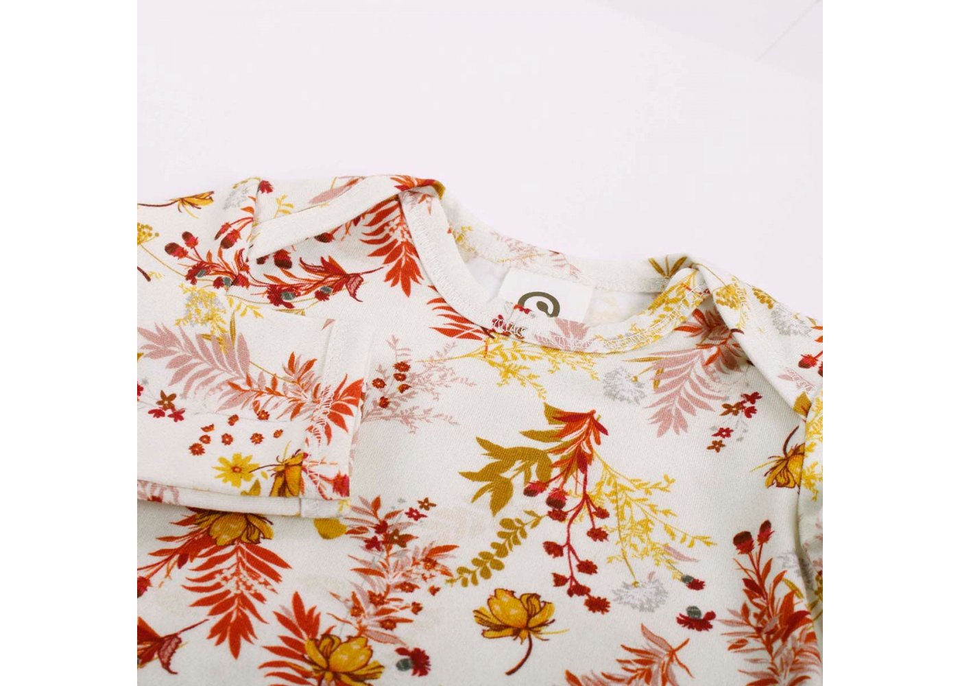 Sød body med lange ærmer i beige med skønne blomster i brændte farver.