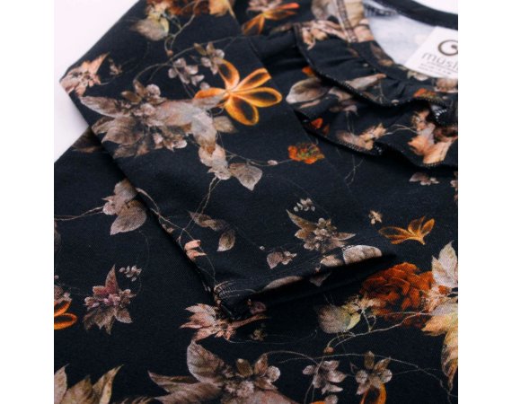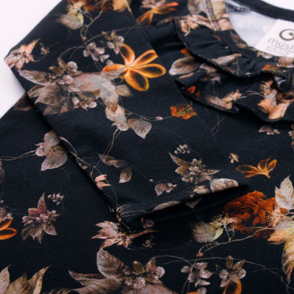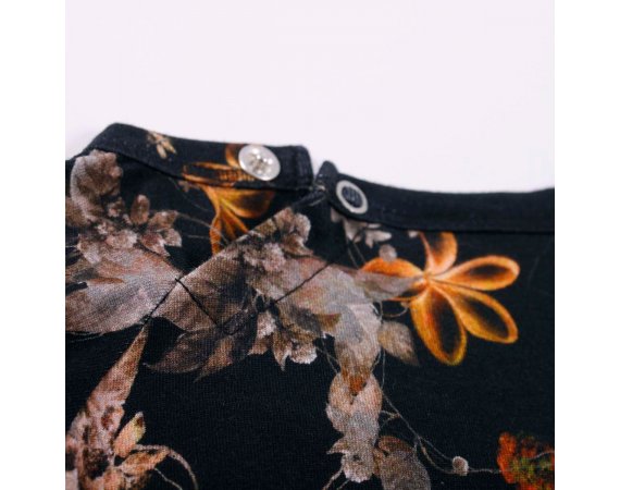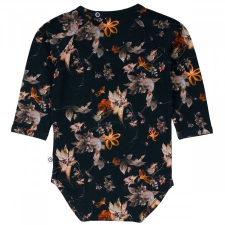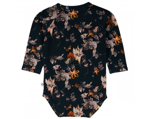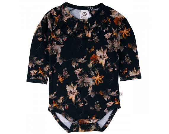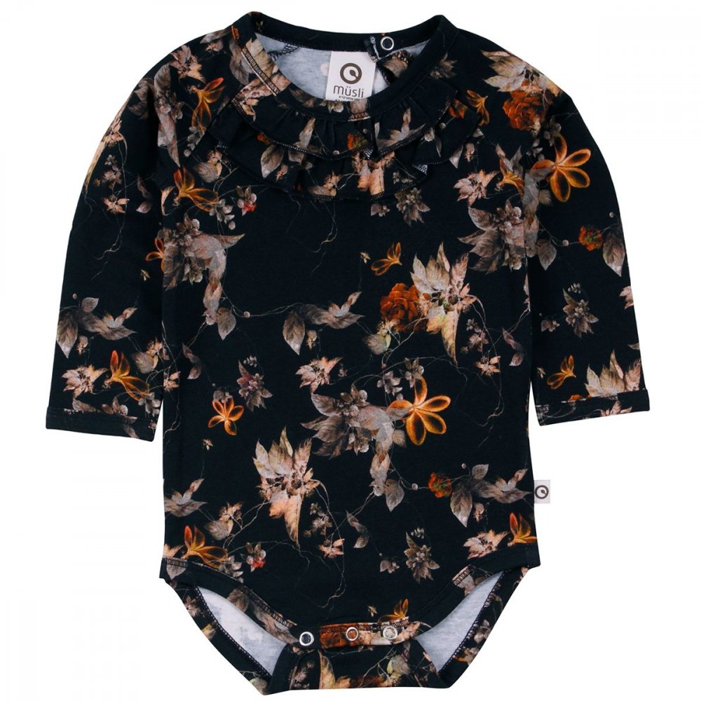 Yndig langærmet body med flot blomsterprint og søde flæser i halsudskæring.