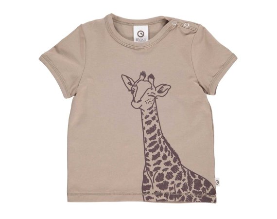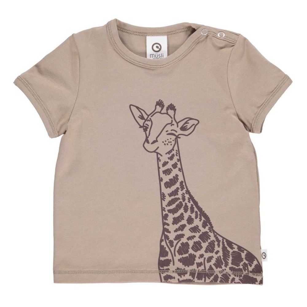 Her får du en sød kortærmet t-shirt med en giraf, der blinker med det ene øje, og ser lidt fræk ud.
