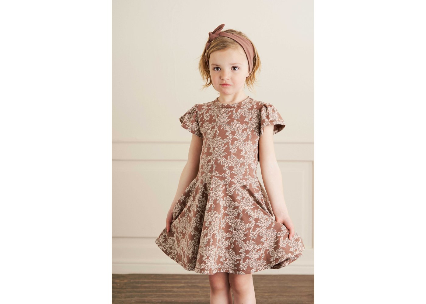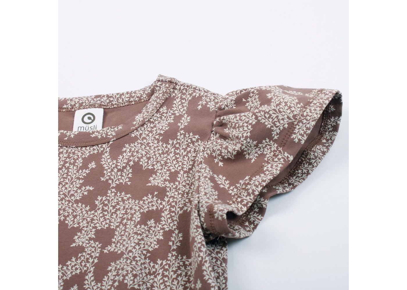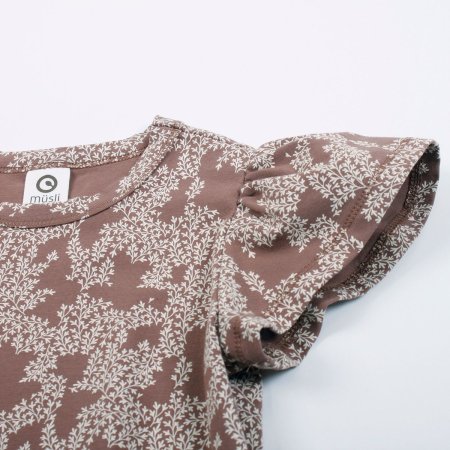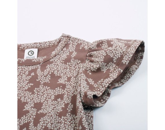 Yndig kortærmet sommerkjole i brune nuancer og med sødt blomsterprint fra Müsli.