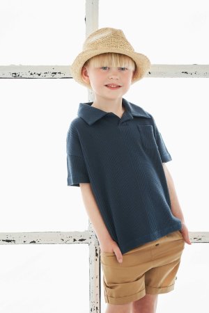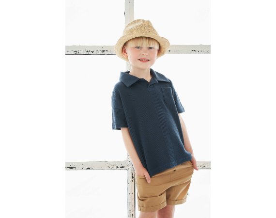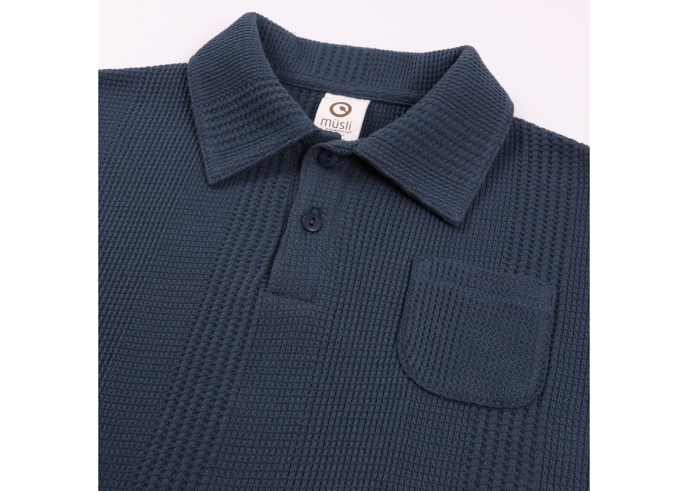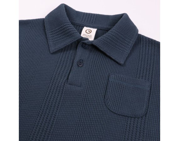 Dejlig blød og behagelig t-shirt med krave og brystlomme i lækker vaflet bomuldskvalitet.