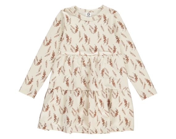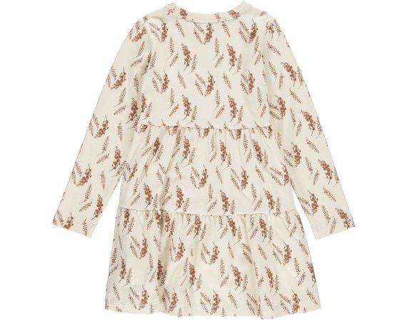 Smarte beige kjole med fint brunt lupin print fra Müsli by Green Cotton.