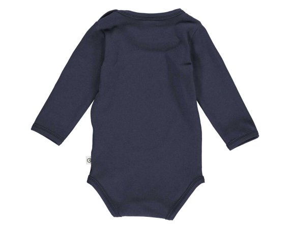 Lækker mørkeblå body med sødt junglemotiv foran i kontrastfarve fra Müsli by Green Cotton.