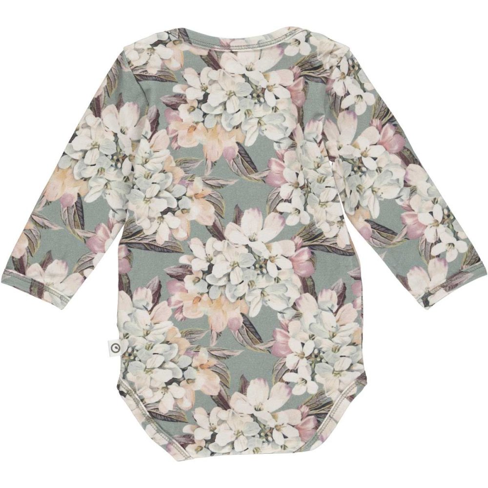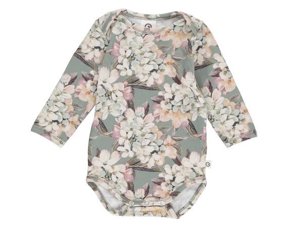 Lækker langærmet grøn body med blomsterprint.
