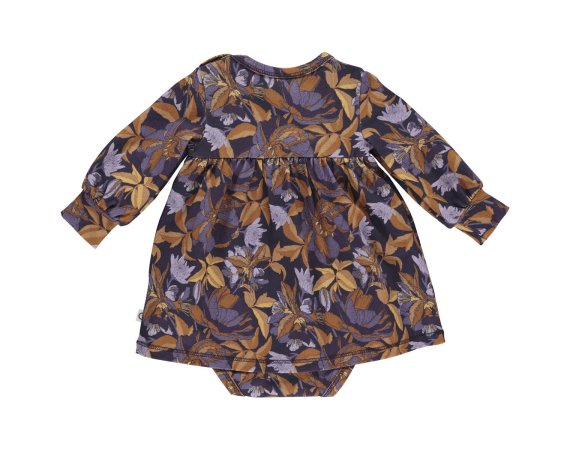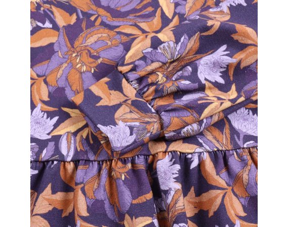 Lækker langærmet bodykjole med smukt blomsterprint i lilla nuancer fra Müsli.