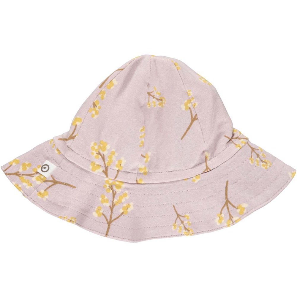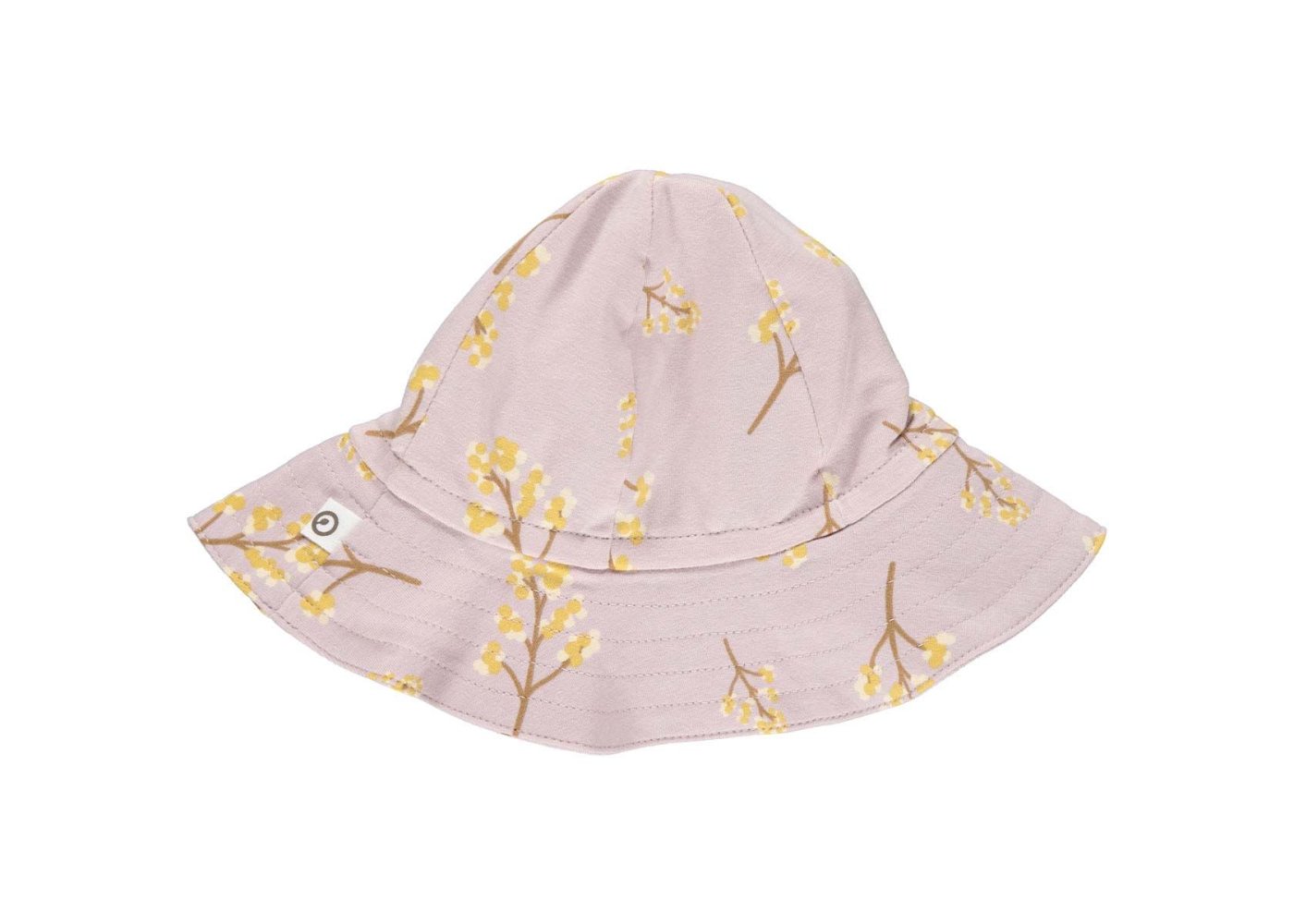 Hatten har en stor skygge, der skærmer for solen i både ansigt og nakke.