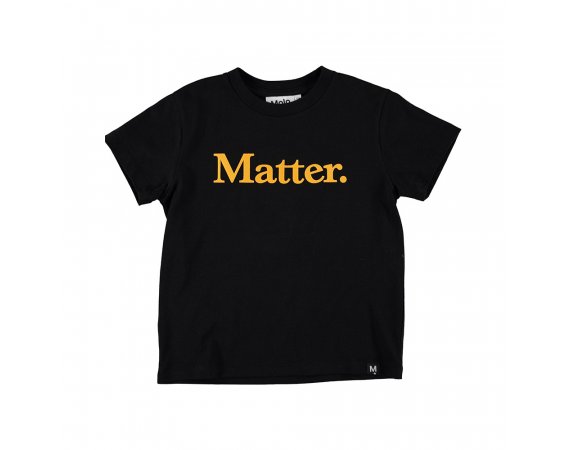 Roxo er en sort bomulds t-shirt med - Matter - skrevet i gult på tværs af brystet.