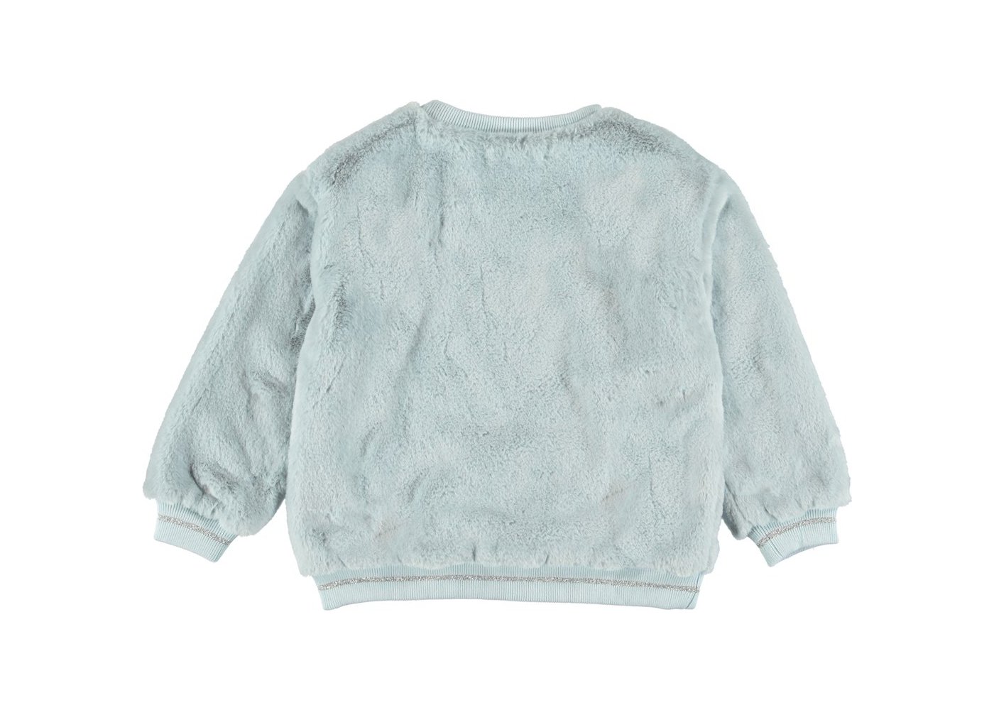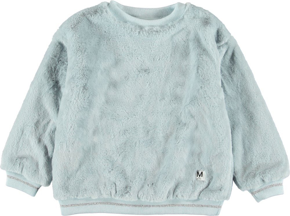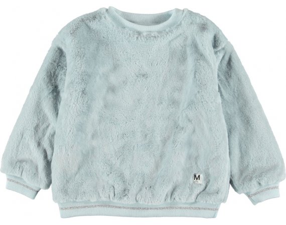 Den lækreste og blødeste trøje fra Molo i en iset blå. Trøjen er lavet i plys Tekstil og har unikt fashion look.