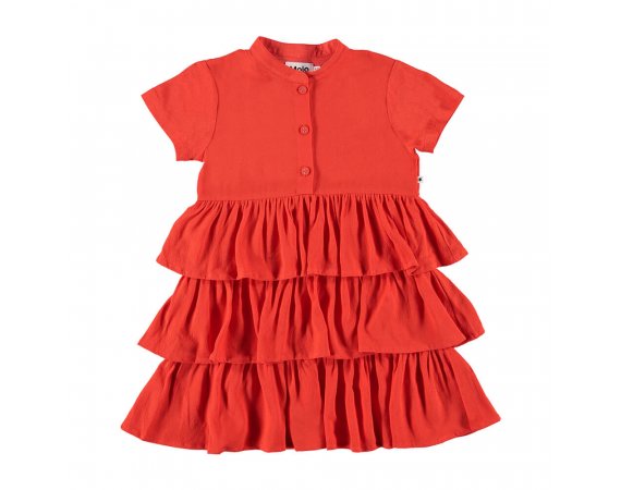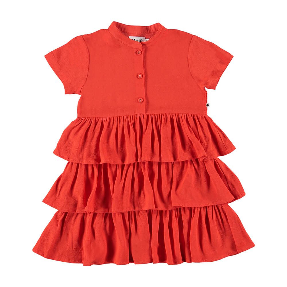 Stilet rød kravekjole fra Molo med knapper og flæsedetaljer