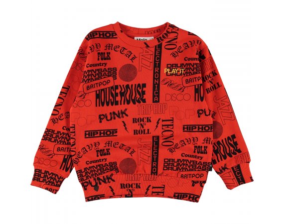 Sweatshirt i rød med sort tekstSkøn sweatshirt der passer til alt - Hip hop, disco, jazz eller tekno.