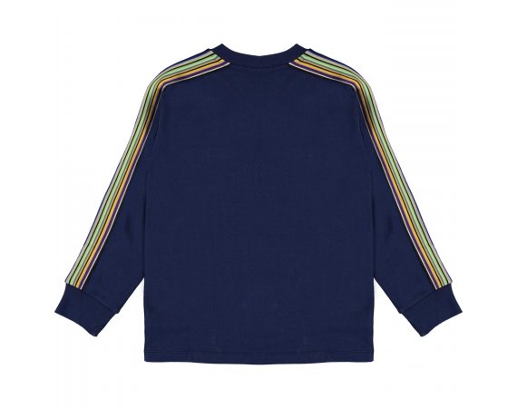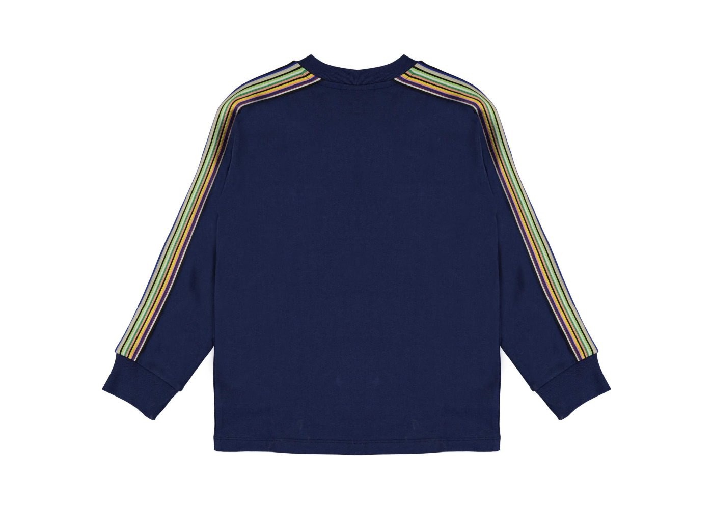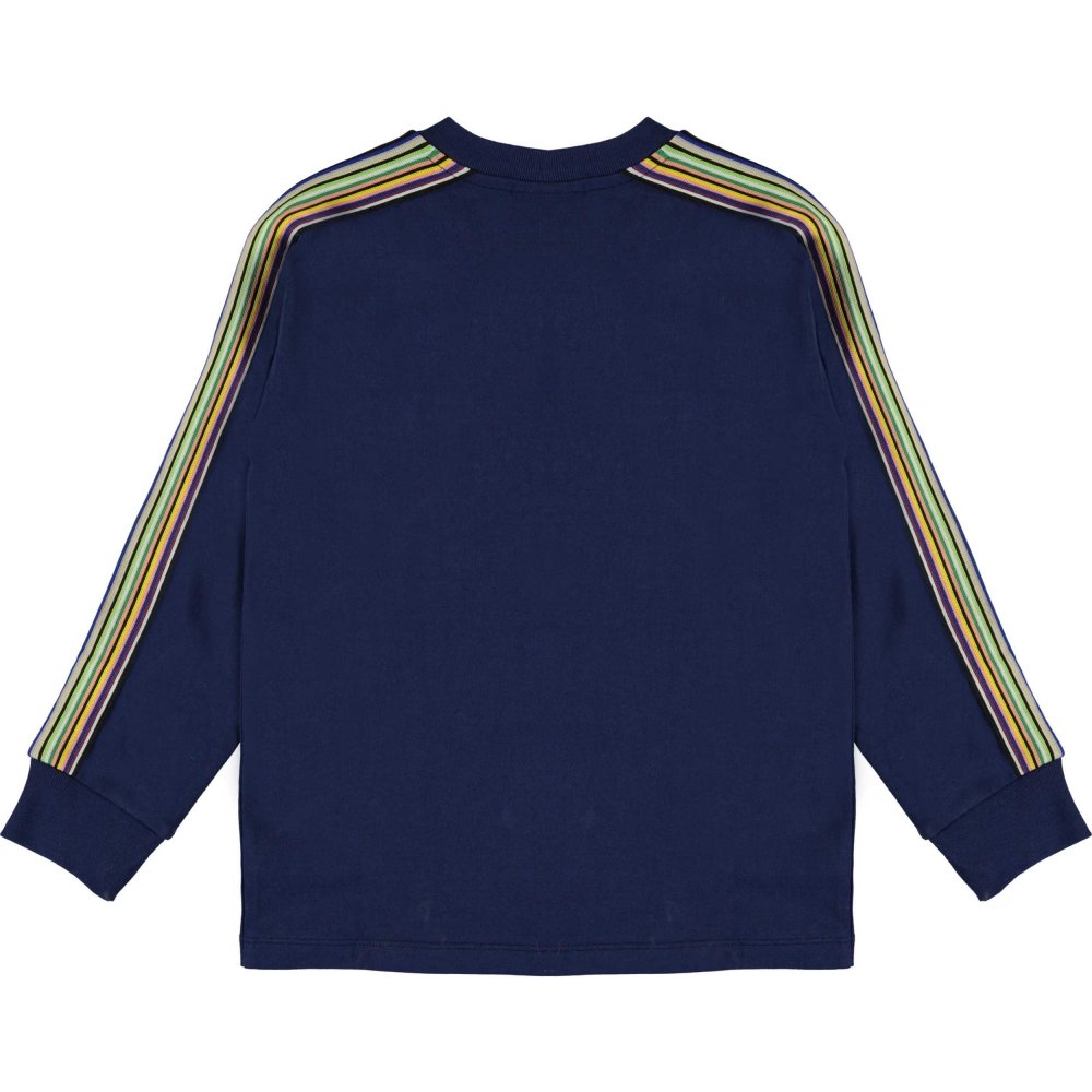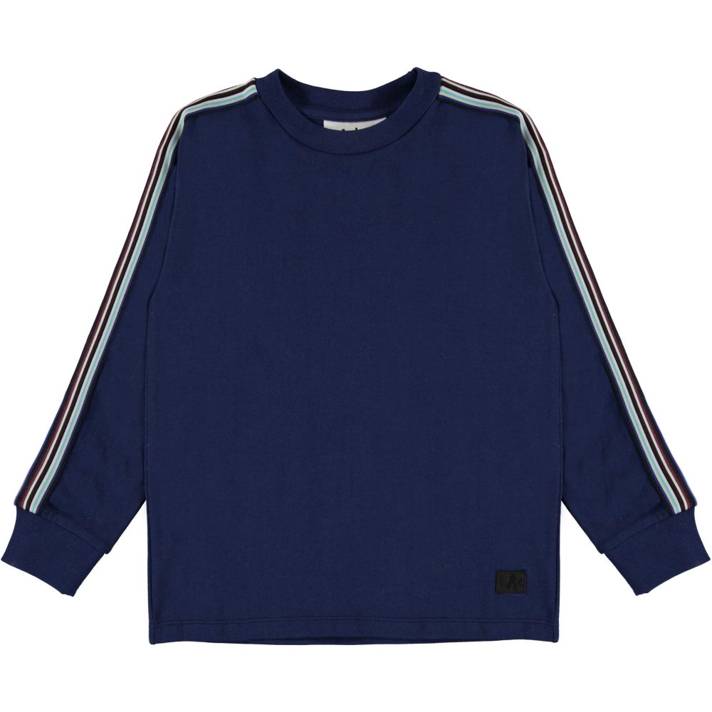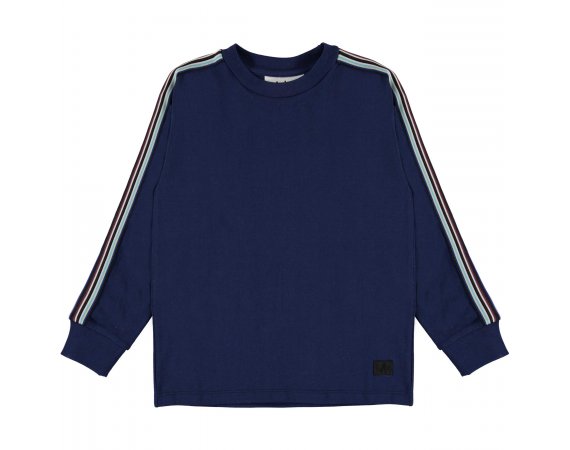 Ensfarvet trøje med ribkant i hals og bred ribkant ved håndled.
