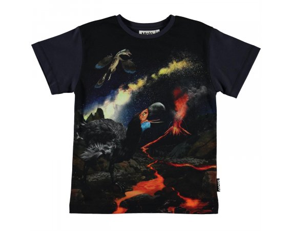 Smart sort Rasmus t-shirt med korte ærmer og printT-shirten er fyldt med vilde fugle og øgler fra fortiden på forsiden og har ensfarvet bagside.