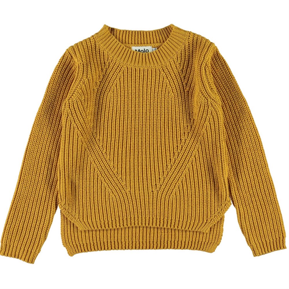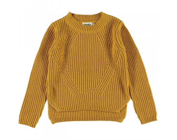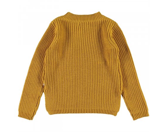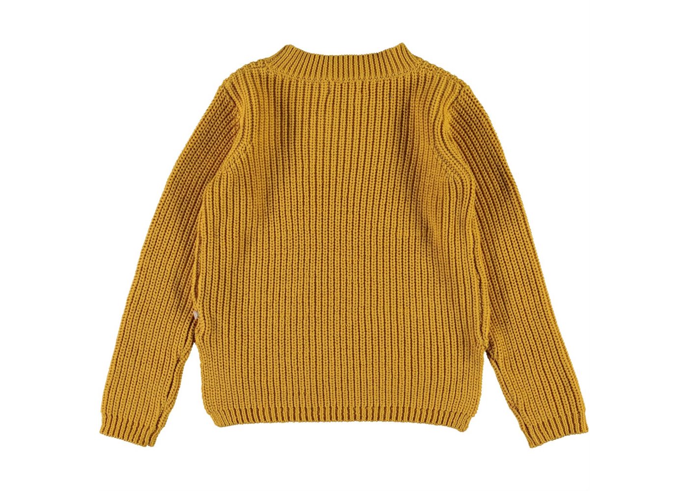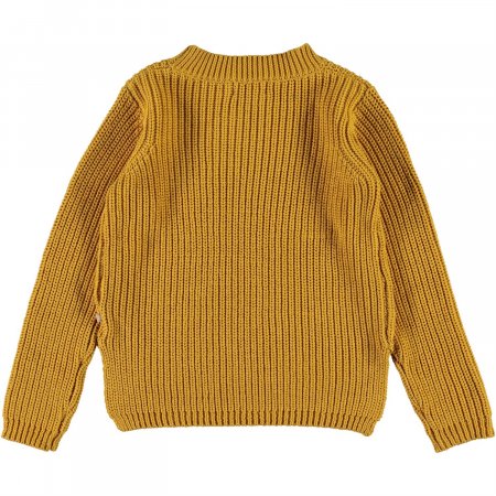 Lækker strikbluse med mønster i en skøn gylden farveBlusen har lange ærmer og ribkanter ved alle åbninger.