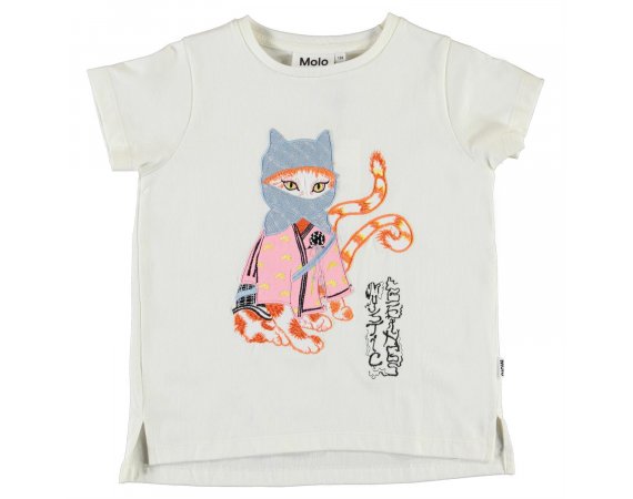 Sjov, sød og festlig t-shirt med en Ninja-klædt katT-shirten har korte ærmer, en fin lille slids i sider og er lidt længere bagpå.