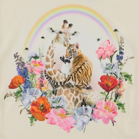 Yndig t-shirt med korte ærmer fra Molo.T-shirten har print af en regnbue, blomster og vilde dyr på forsiden.