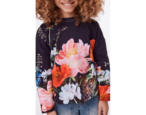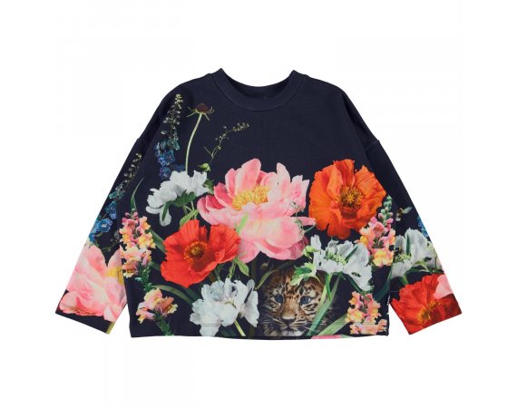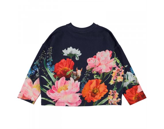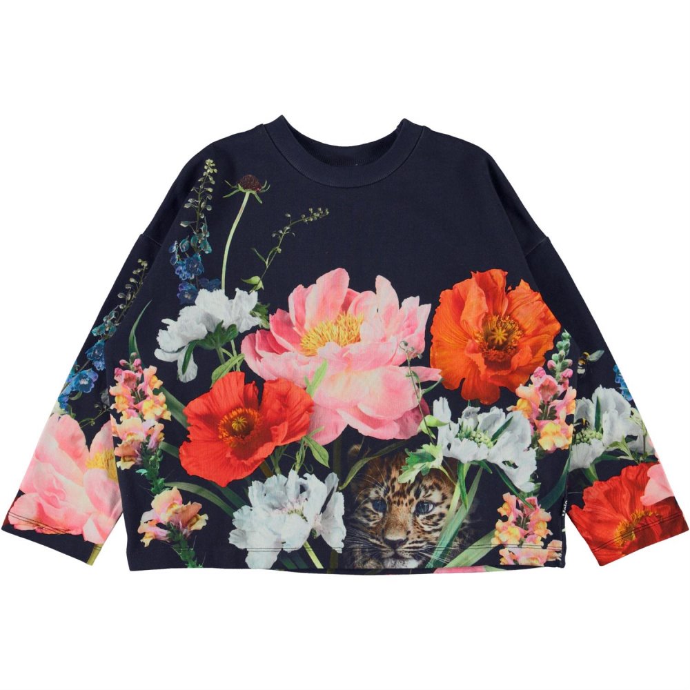 Marin fra Molo er en mørkeblå sweatshirt med flot blomsterprint på fronten.Sweatshirten har en oversized pasform, som gør den super lækker og behagelig at have på.