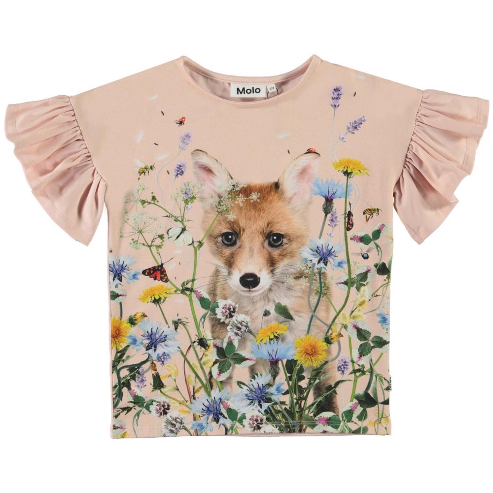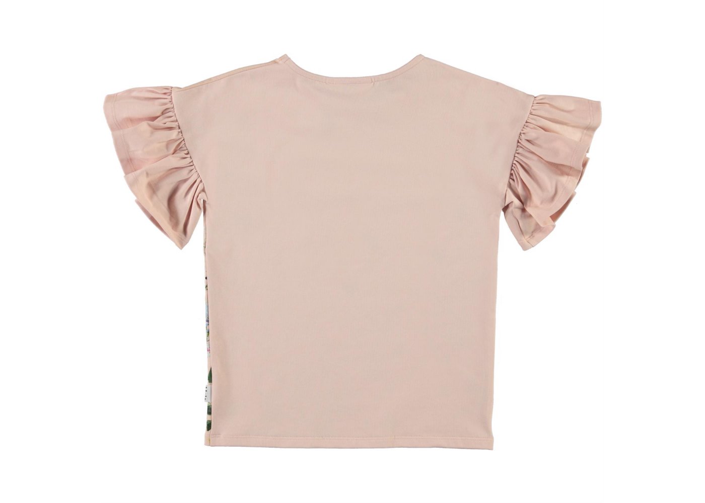 Yndig rosa t-shirt med korte flæseærmer fra Molo.