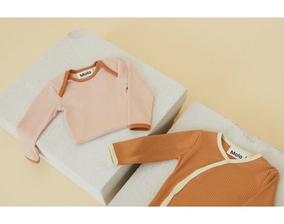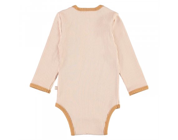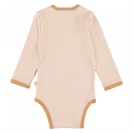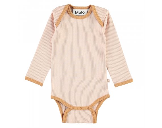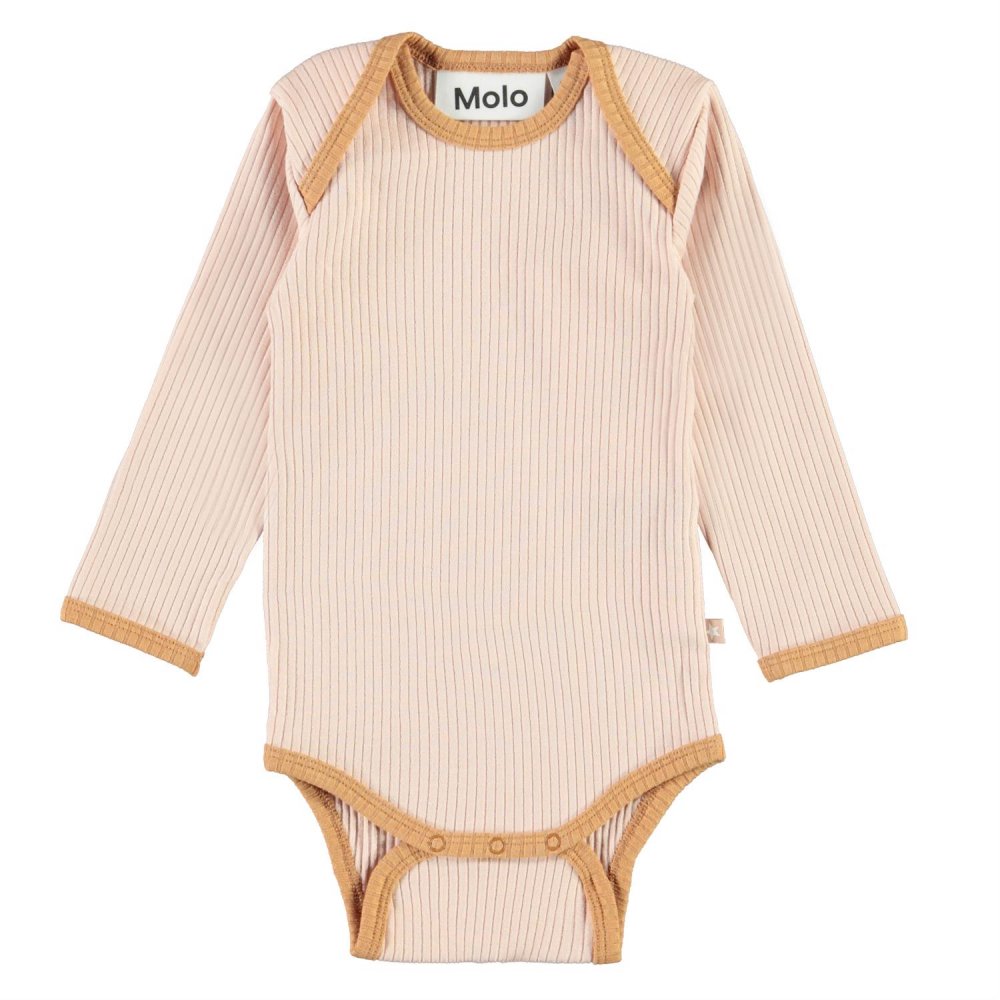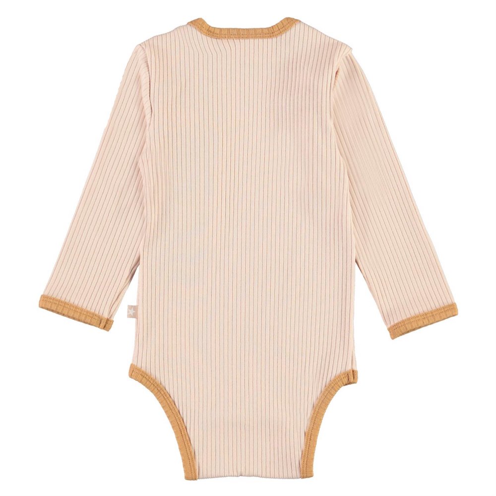 Super sød rib body i rosa med beige-brune ribkanter fra Molo.