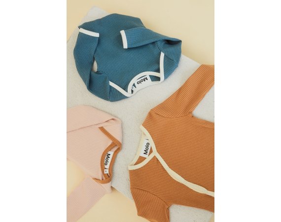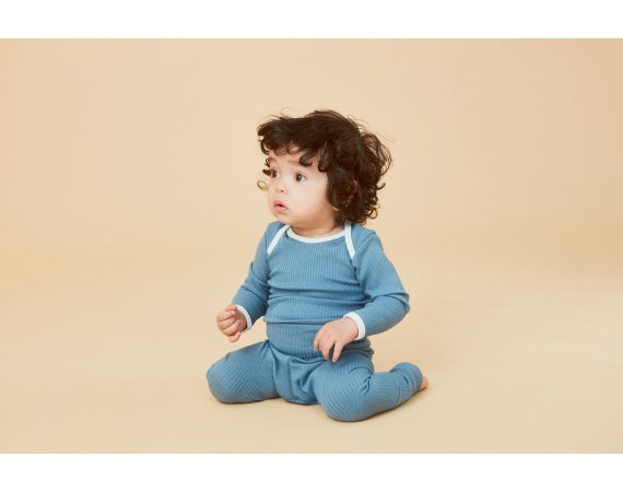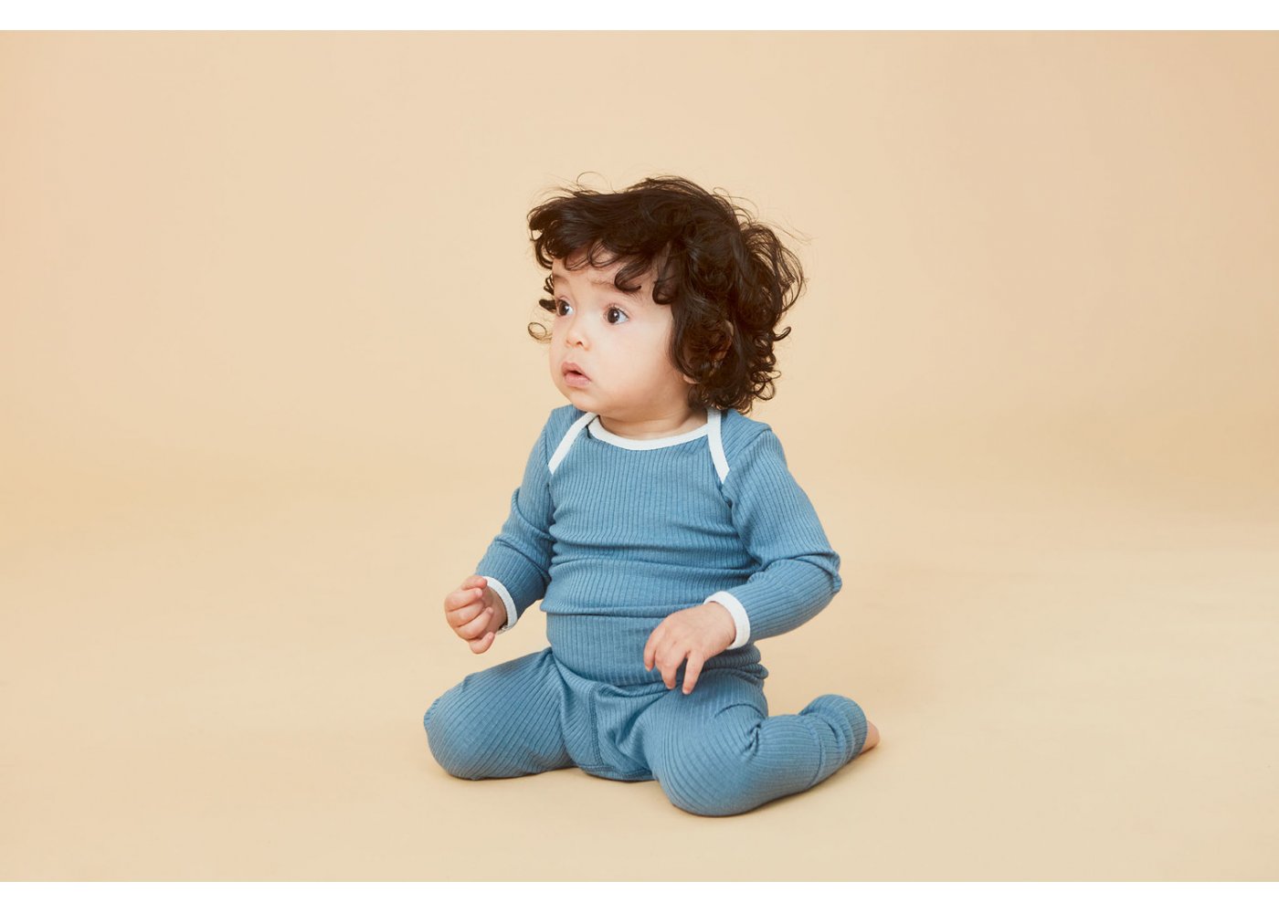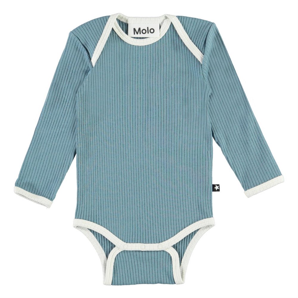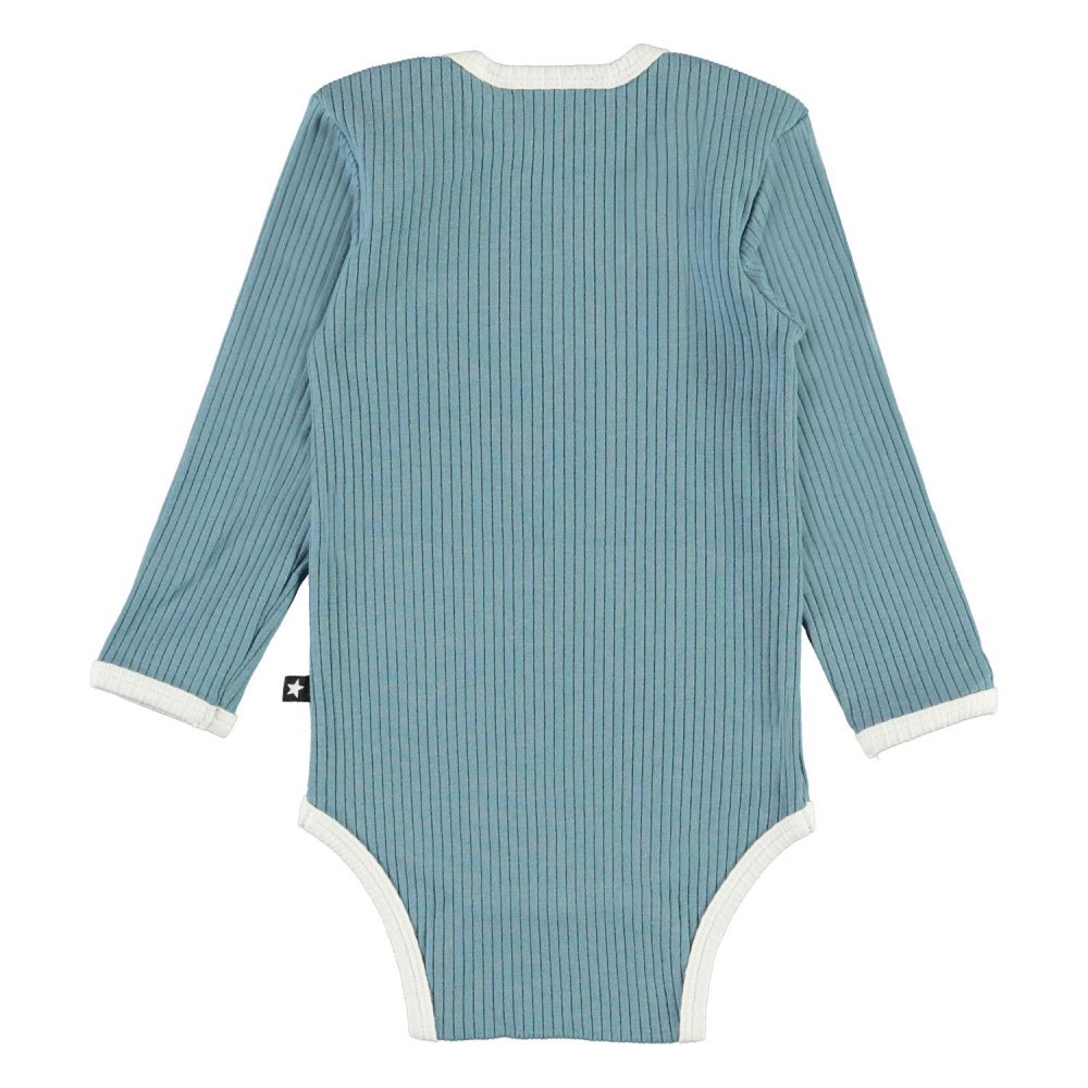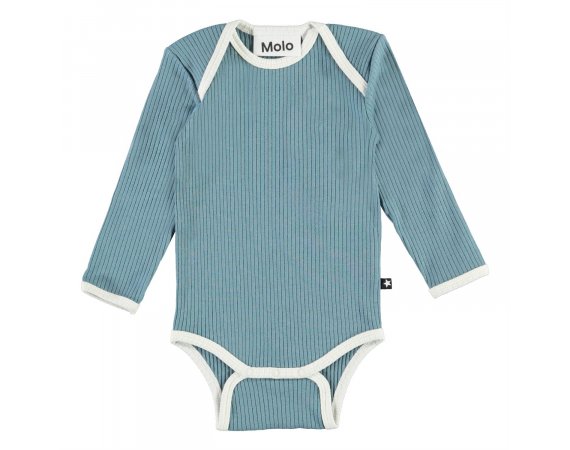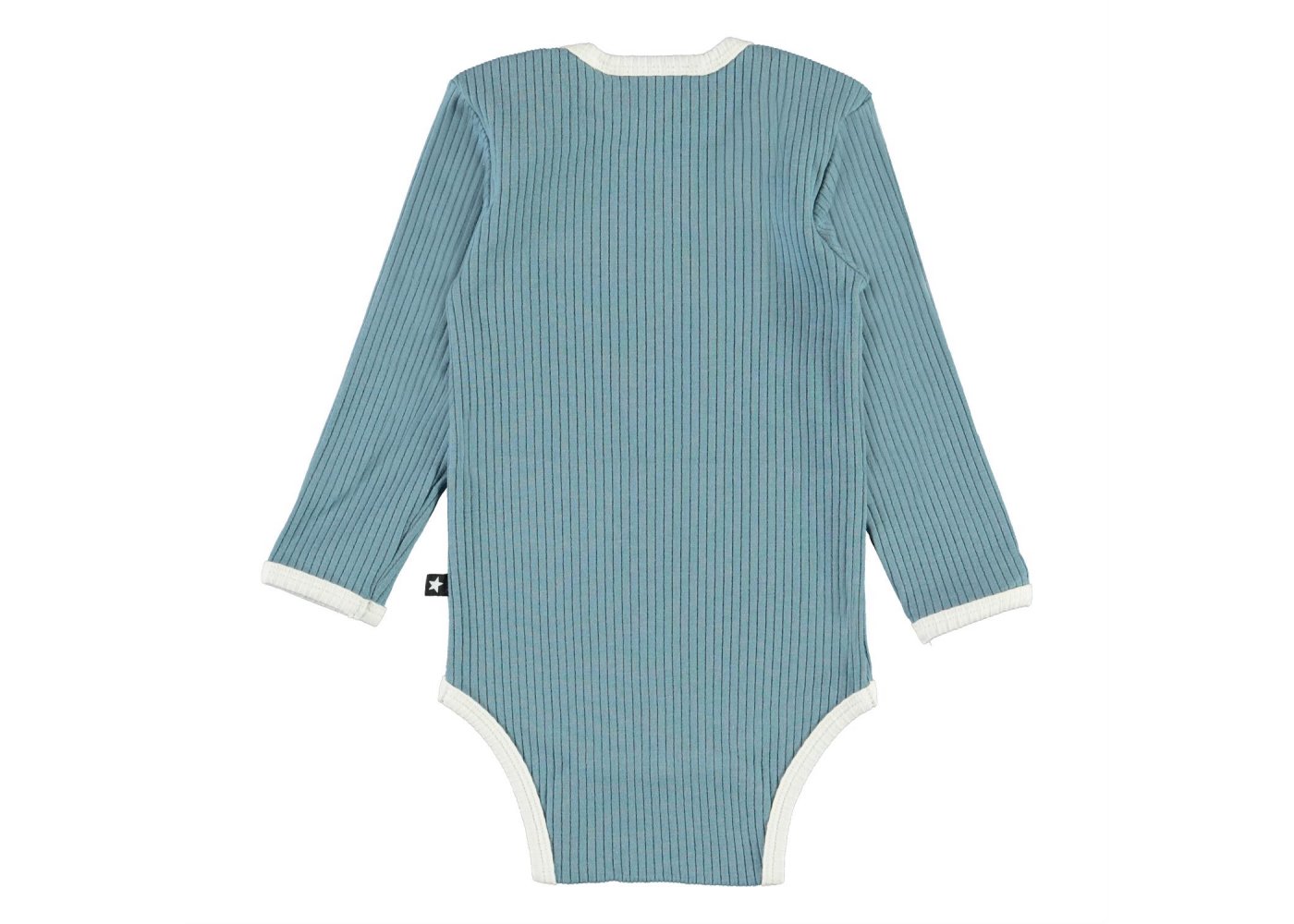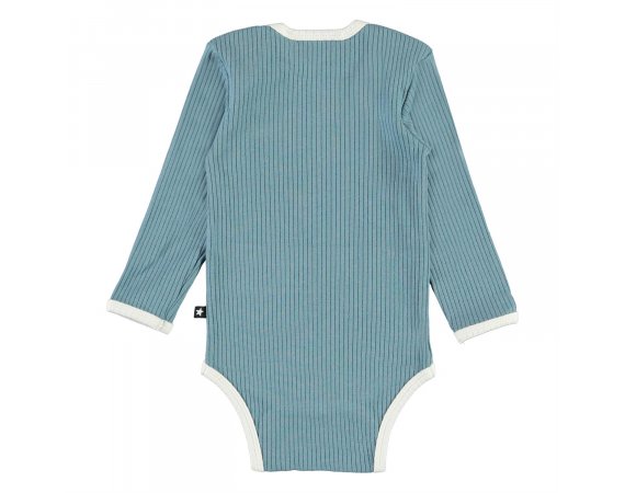 Super sød rib body i lyseblå med hvide ribkanter fra Molo.