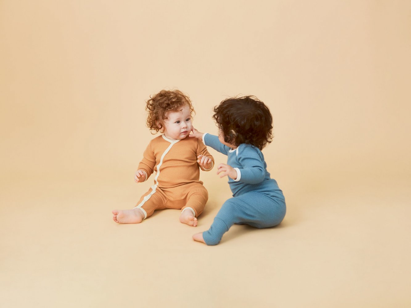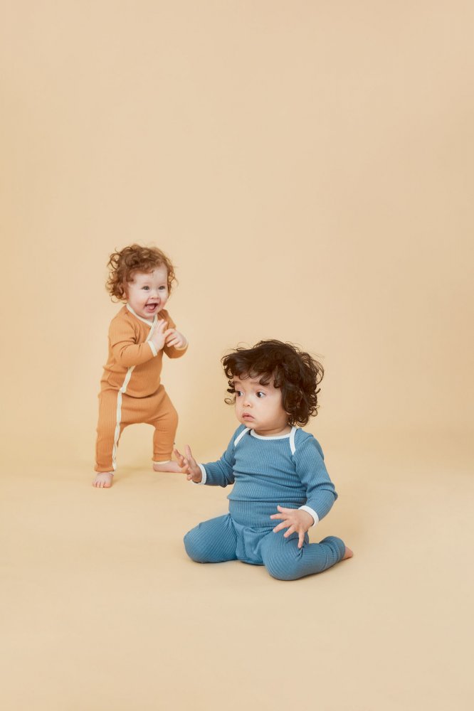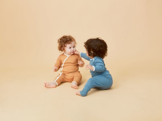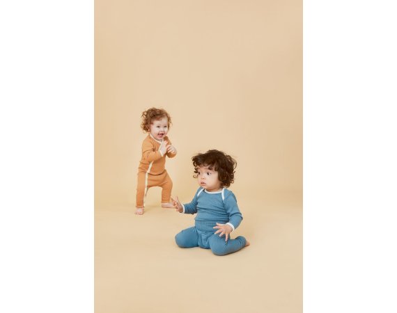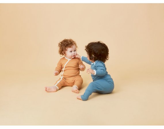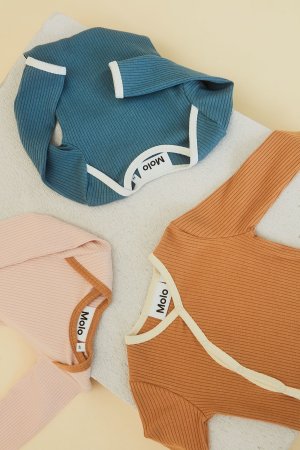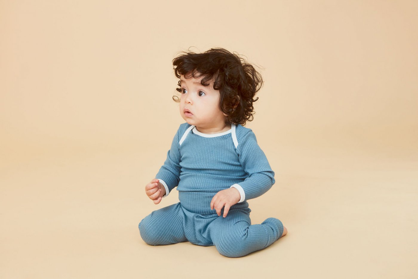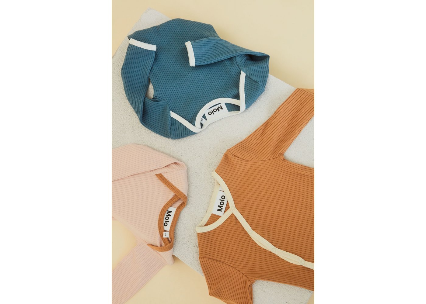 Super sød rib body i lyseblå med hvide ribkanter fra Molo.