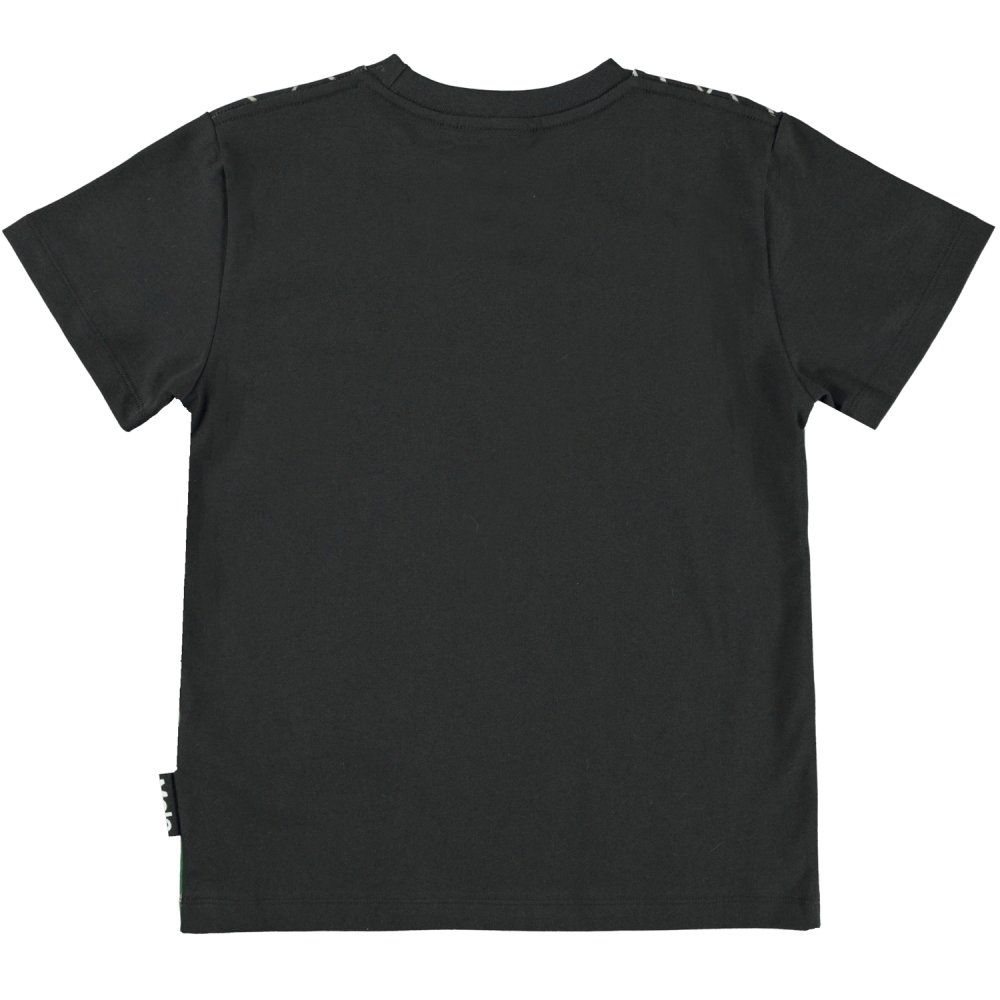 T-shirten har korte ærmer og er ensfarvet bagpå.