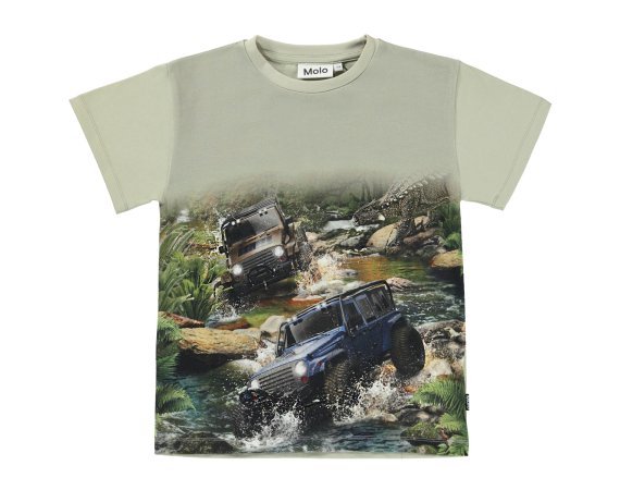 T-shirten har korte ærmer og er ensfarvet bagpå.